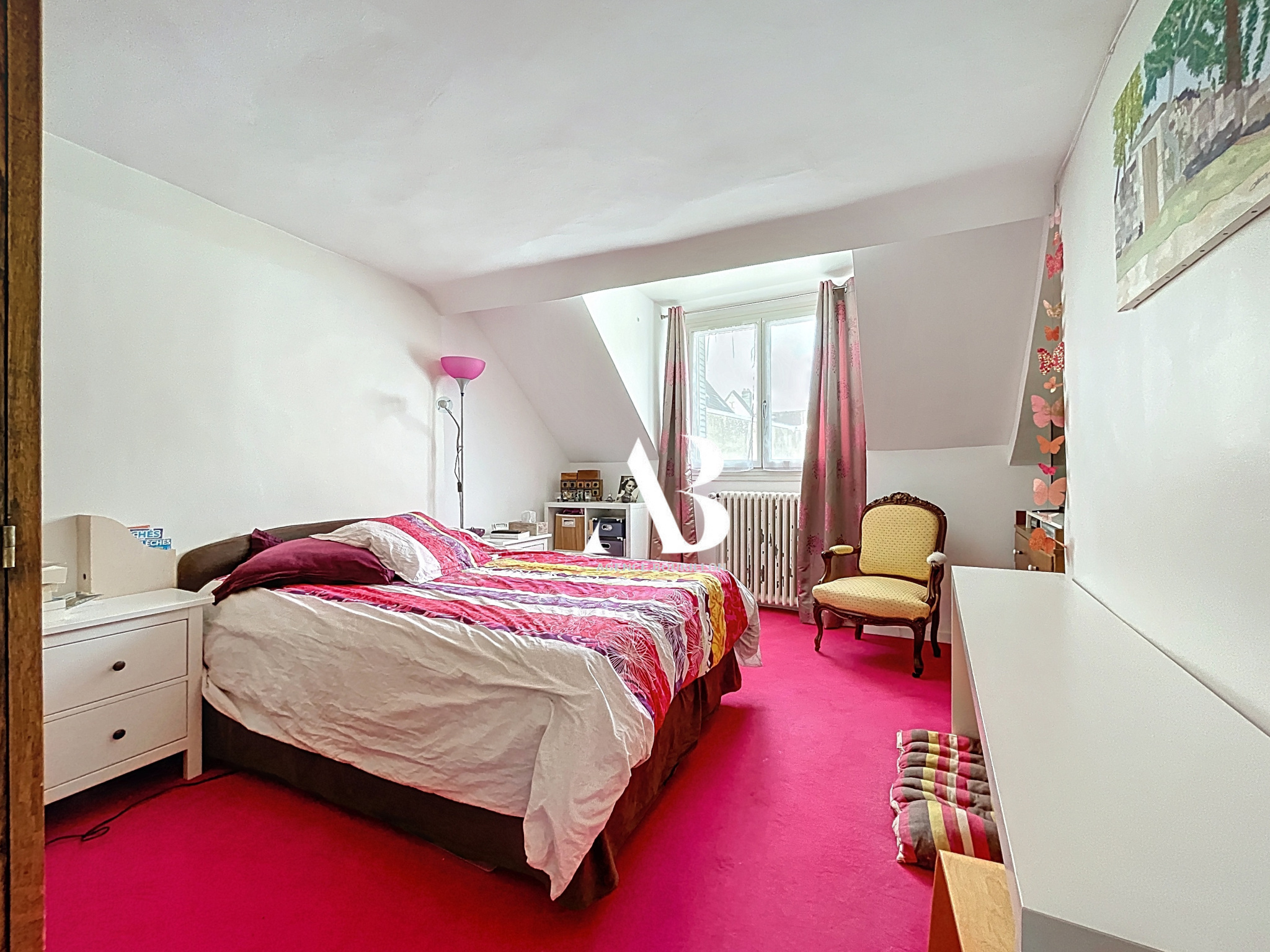 À l'étage : un palier avec espace bureau desservant deux belles chambres (13.06 m2 et 12.92 m2 habitables) ainsi qu'une salle de bains avec douche, baignoire et WC.