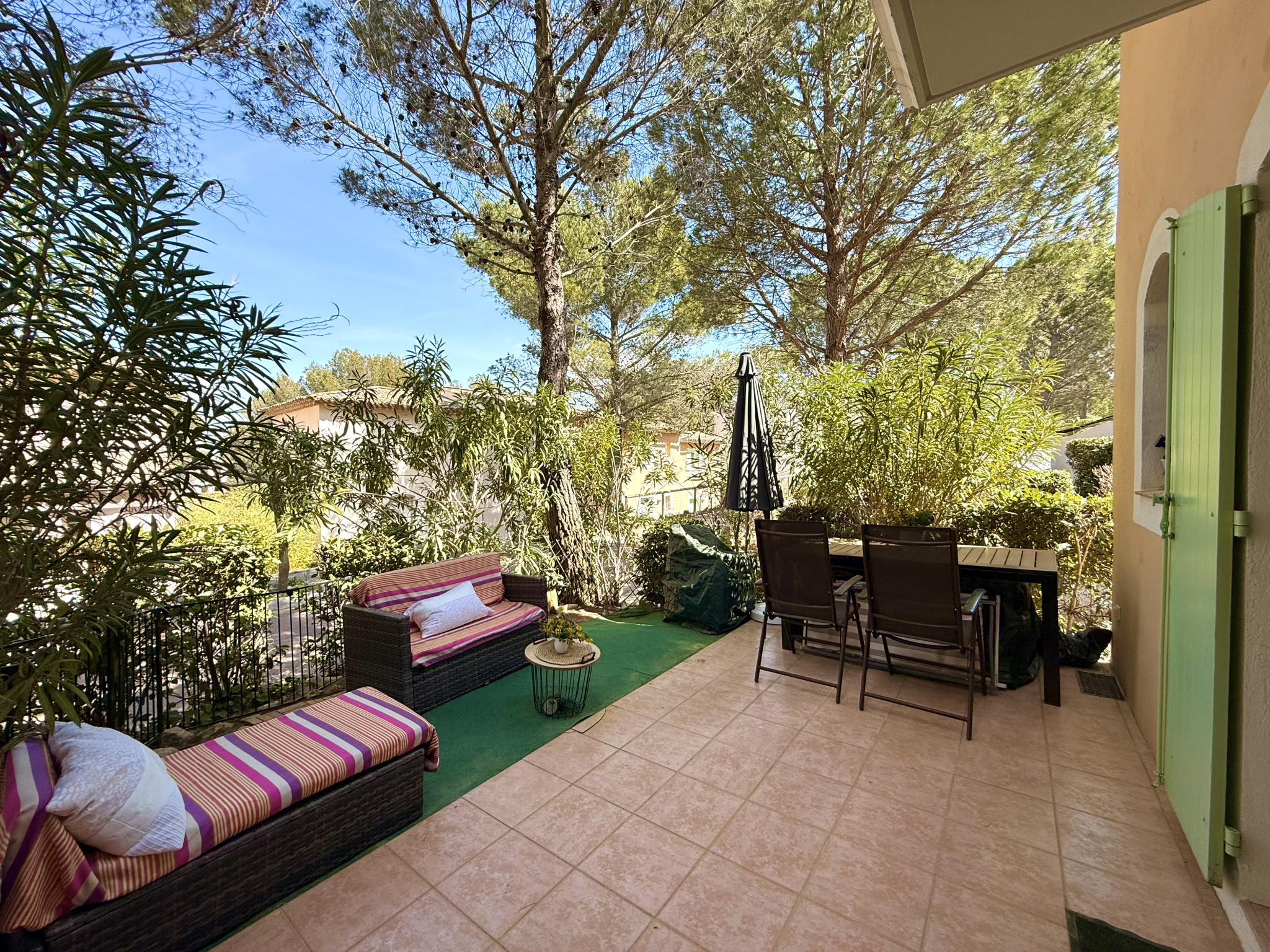 Une terrasse ensoleillée et un jardinet privatif, idéal pour les repas en plein air ou un moment de détente.