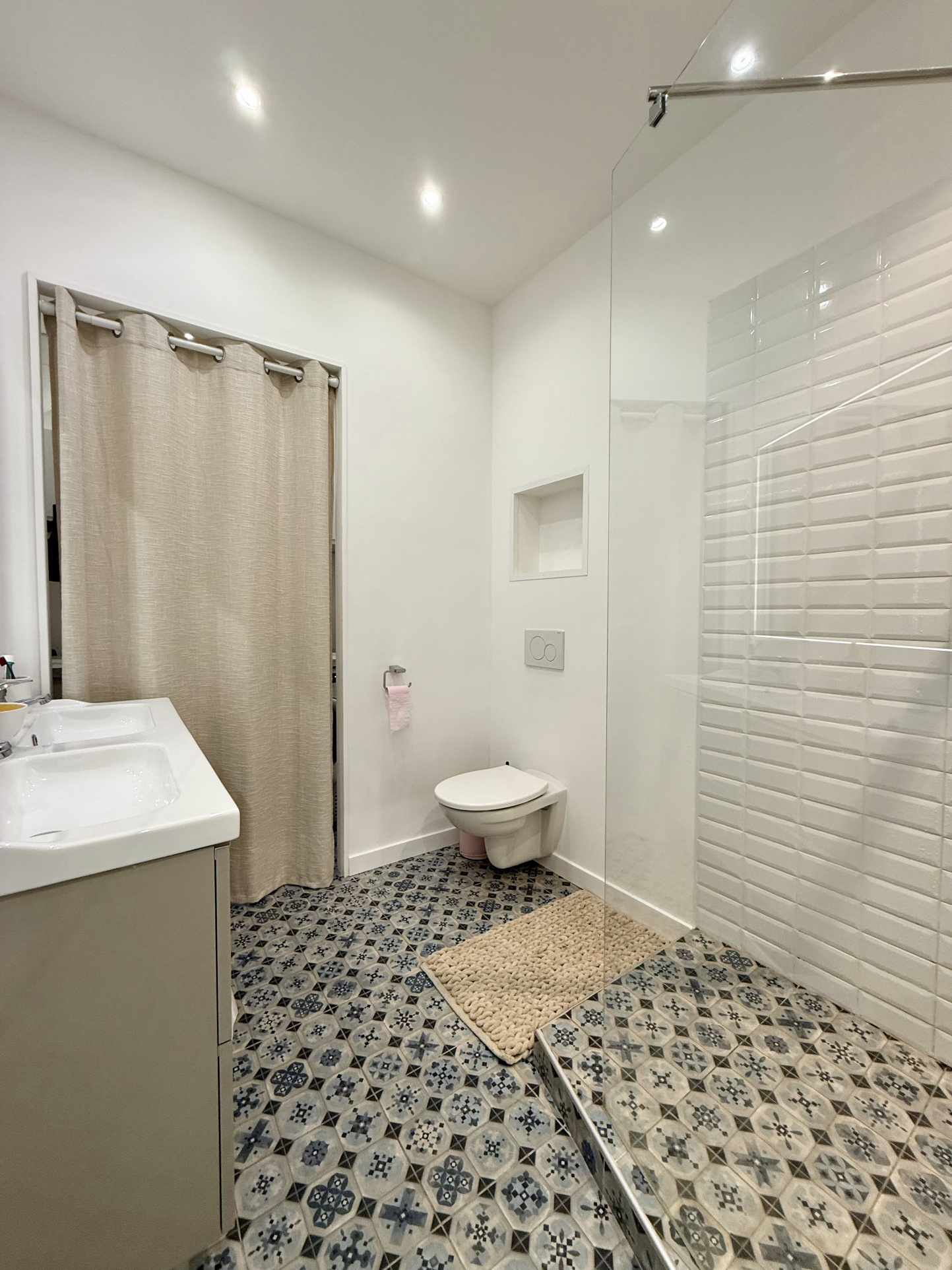 En étage, il se compose d'une entrée avec dressing, vaste séjour avec cuisine équipée ouvrant sur un balcon avec vue. Offrant une belle hauteur sous-plafonds, le séjour bénéficie d'une mezzanine avec espace bureau ainsi qu'une salle d'eau et wc invité. Une chambre parentale avec dressing donnant accès au balcon ainsi qu'une seconde salle d'eau, wc et buanderie séparée.