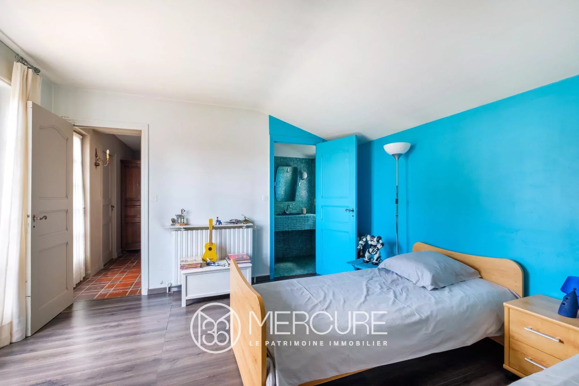 À l’extérieur, place à la détente : une piscine de 9 m x 4,5 m avec son pool-house (construit en 1990), entourée d’un jardin paysager et d’arbres fruitiers.
