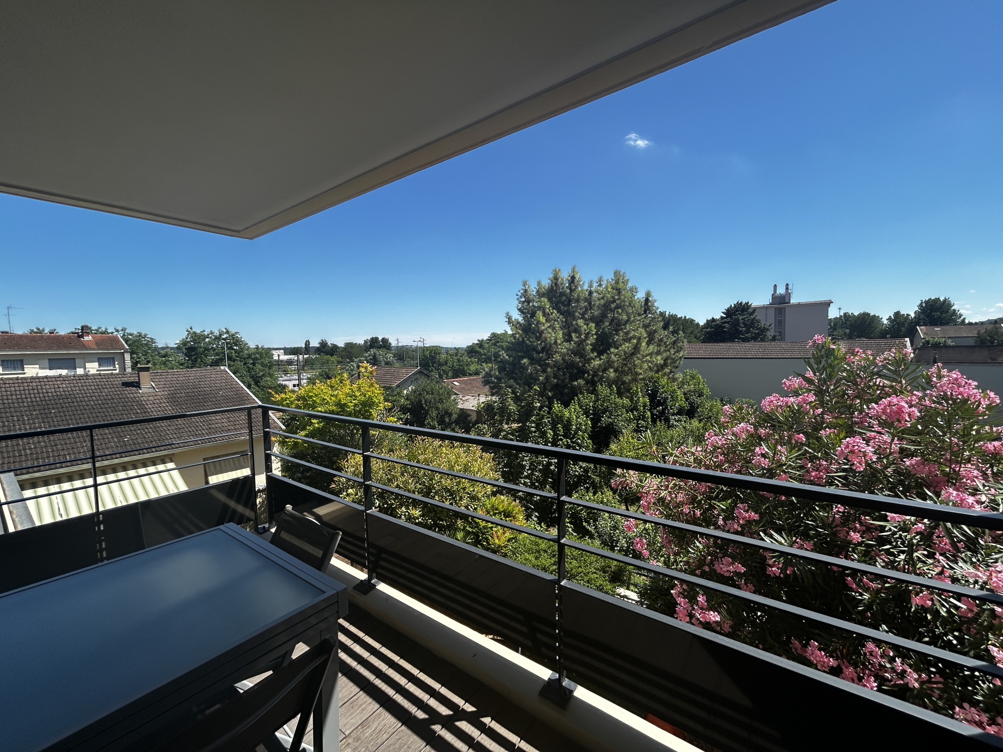 Le séjour vous accueille dans un espace chaleureux ouvert sur un balcon plein sud, idéal pour vos moments de détente ou vos petits-déjeuners au soleil
