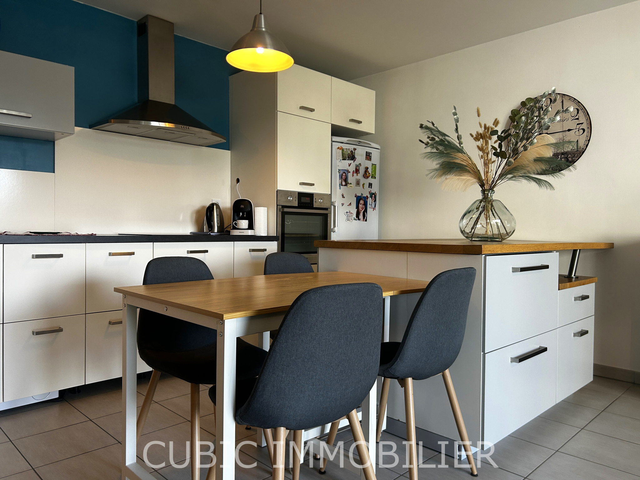 La cuisine, entièrement équipée, s'intègre harmonieusement dans la pièce de vie. Trois chambres calmes, une salle de bains élégante, des WC séparés et de nombreux rangements complètent cet agencement parfaitement pensé.