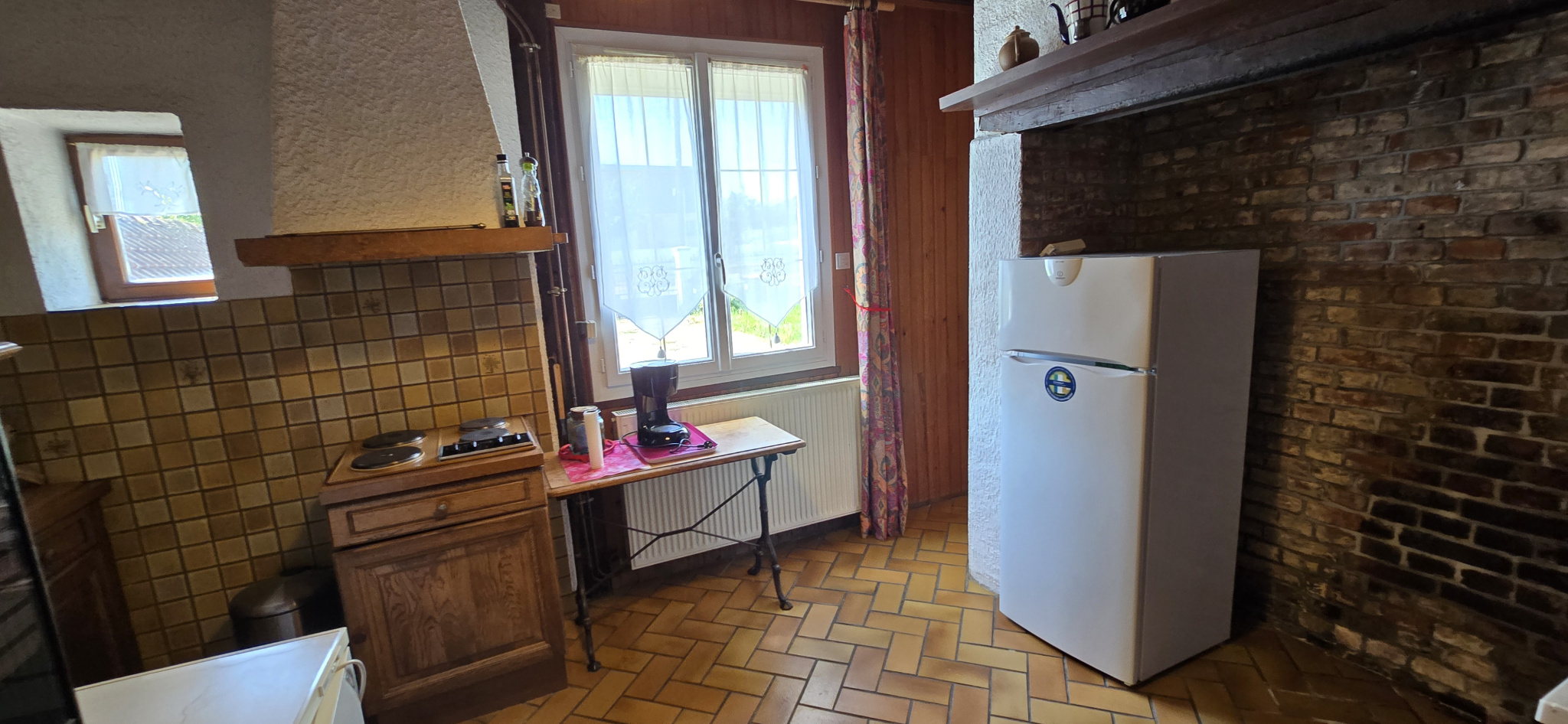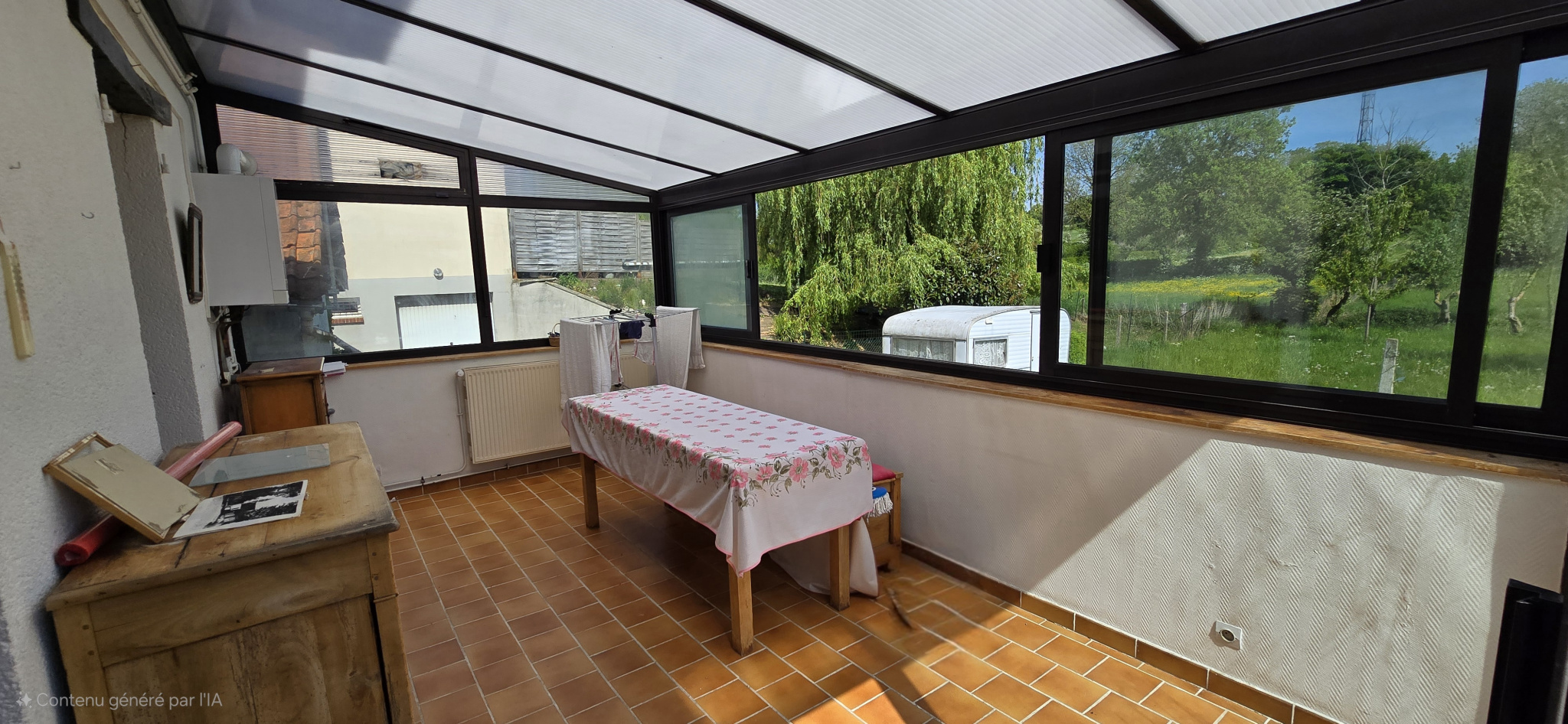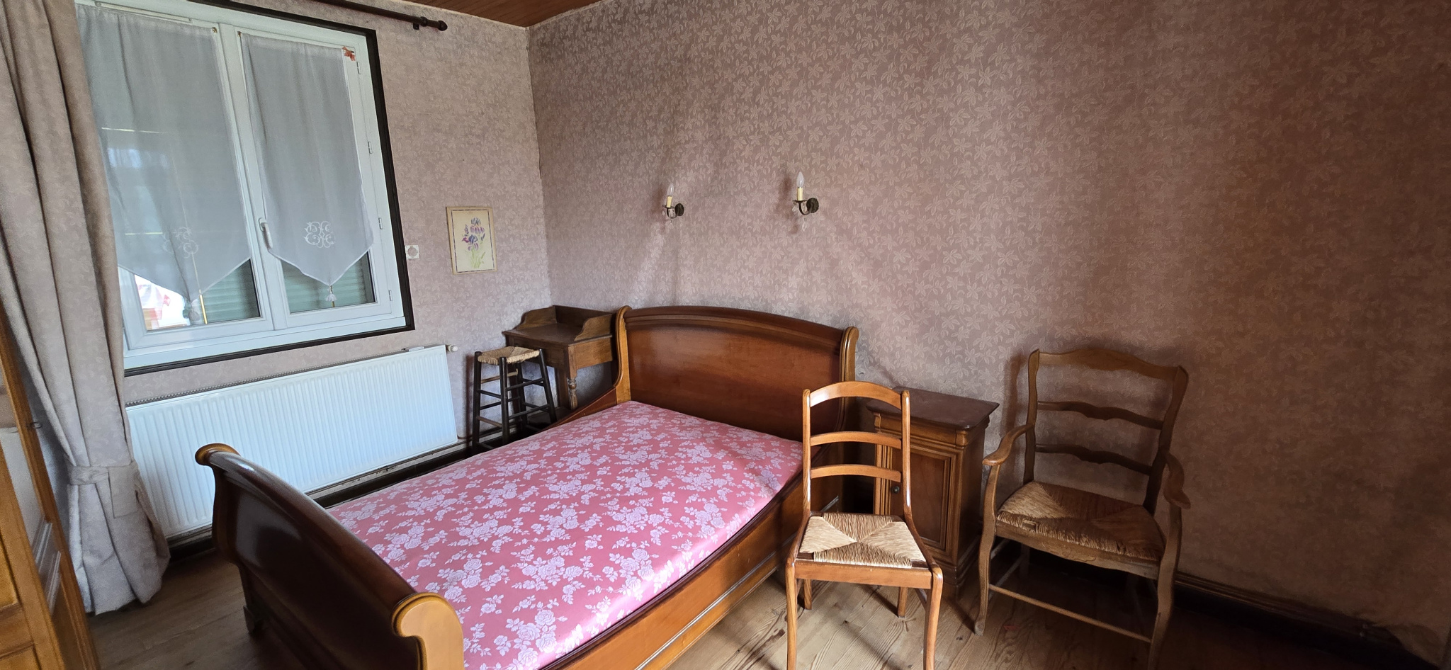 -Au rez de chaussée : Cuisine, séjour avec cheminée (insert), une chambre, salle d'eau et WC, véranda. -A l'étage : Palier, deux chambres, WC, salle d'eau. Cave. Extérieur : Cour, garage, étables, abri, coin douche, pelouse. L'ensemble sur 1542 m2de terrain. Surface habitable DPE : 83m2. Fenêtres double vitrage PVC et bois. Volets roulants, chauffage central gaz (citerne). Classe énergie : E.
