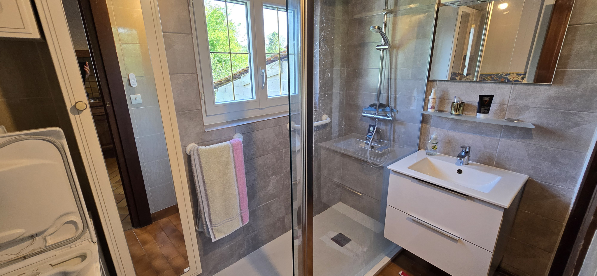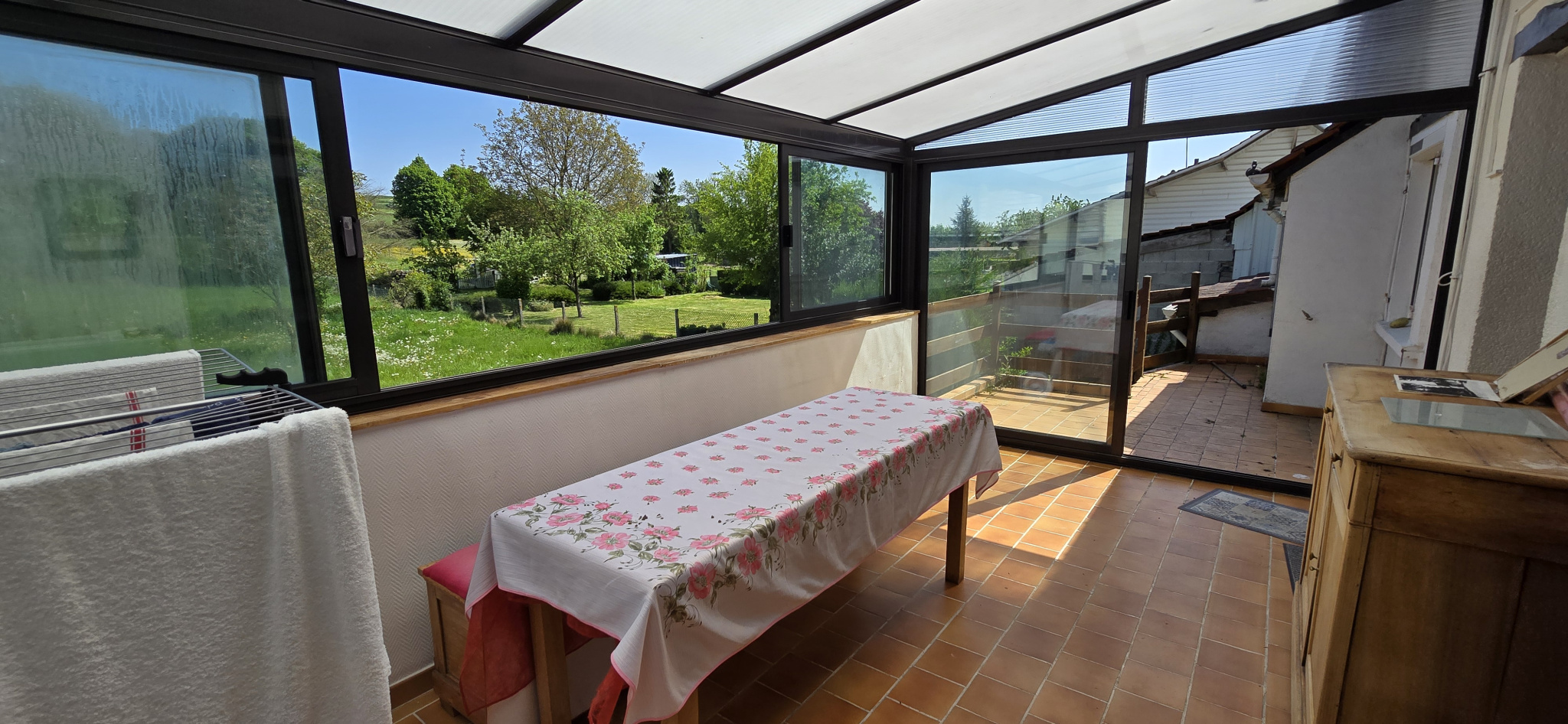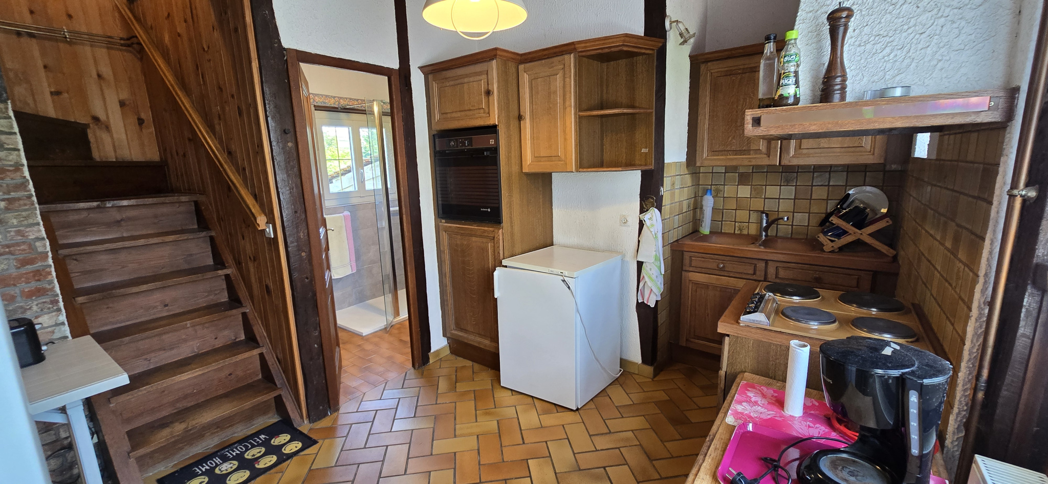 -Au rez de chaussée : Cuisine, séjour avec cheminée (insert), une chambre, salle d'eau et WC, véranda. -A l'étage : Palier, deux chambres, WC, salle d'eau. Cave. Extérieur : Cour, garage, étables, abri, coin douche, pelouse. L'ensemble sur 1542 m2de terrain. Surface habitable DPE : 83m2. Fenêtres double vitrage PVC et bois. Volets roulants, chauffage central gaz (citerne). Classe énergie : E.
