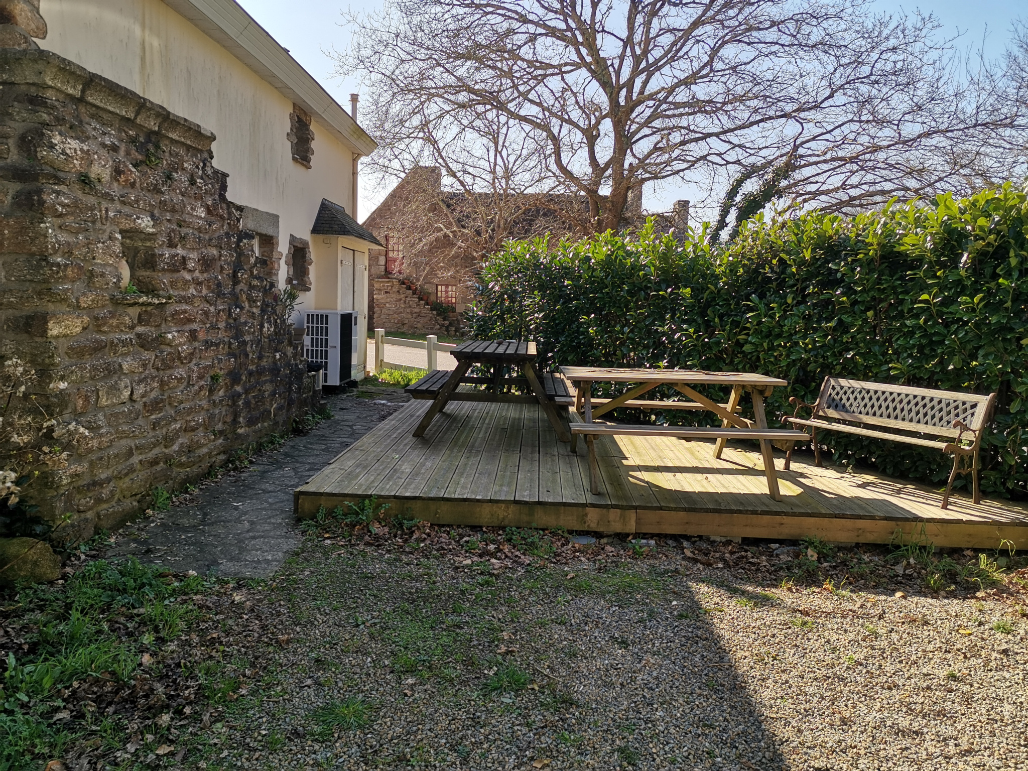 À l'extérieur, vous profitez d'une cour de 358 m2 avec une terrasse en bois.