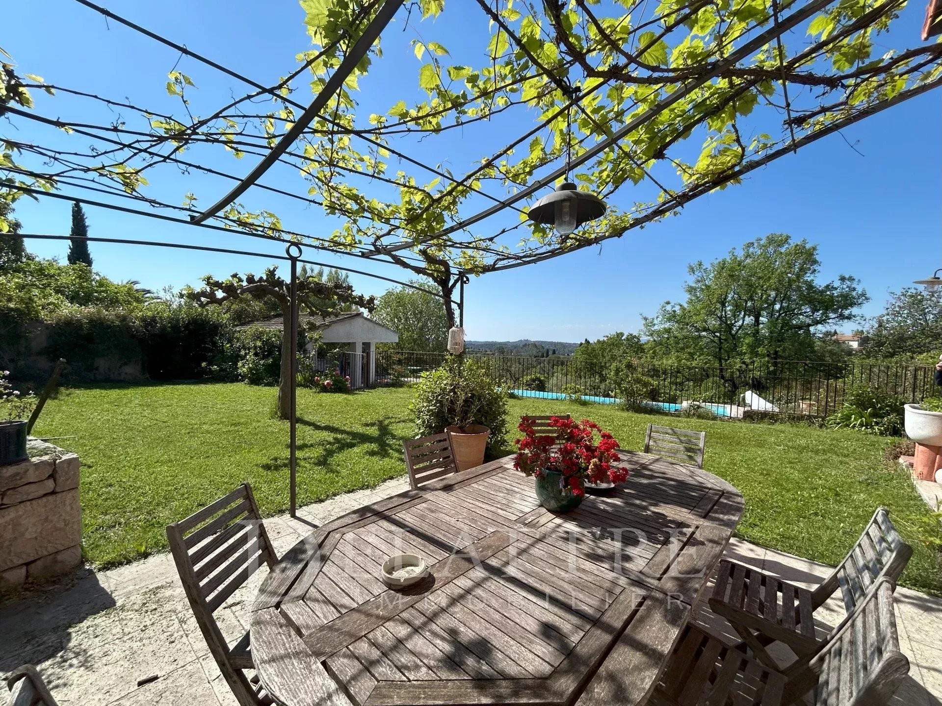 Le jardin de 2400 m² environ méditerranéen complanté d'agrumes sans vis à vis,offre une très belle vue dégagée et un aperçu mer,belle bastide des années 1900 de plus de 250 m²,offrant un bel espace de verdure et une piscine à débordement donnant accès à un vaste garage,et nombreux parkings extérieurs.