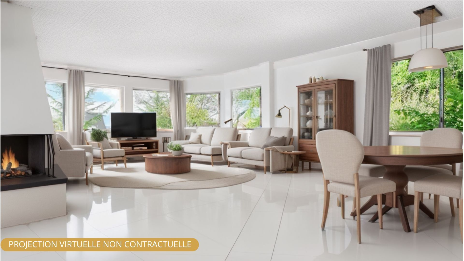 Le sous-sol, quant à lui, abrite une grande pièce de vie équipée d'une cheminée, offrant un potentiel supplémentaire pour un espace familial ou un coin détente. Le garage spacieux (4 voitures), la chaufferie, la cave et la buanderie ainsi qu'une cuisine complètent cette maison.