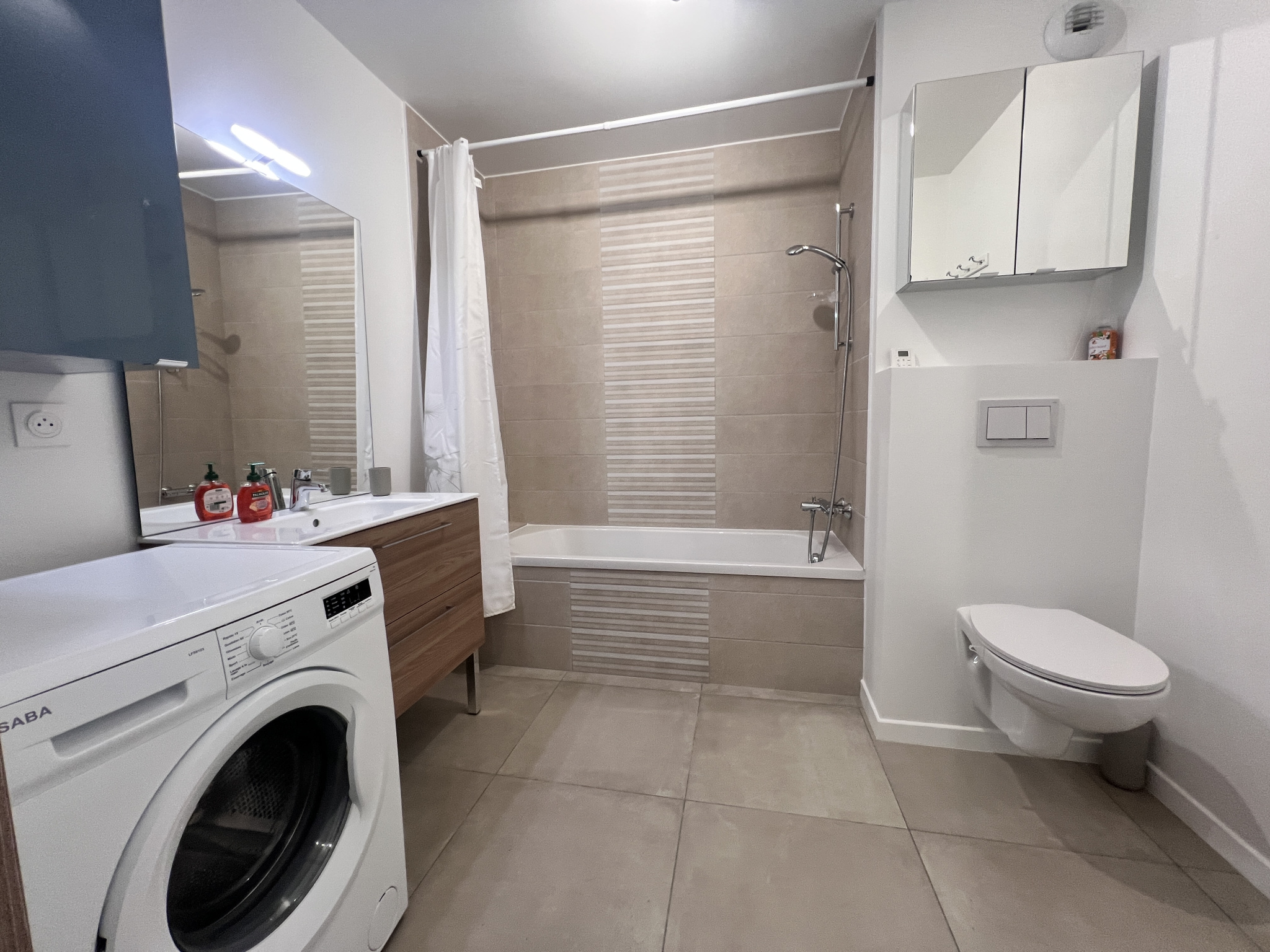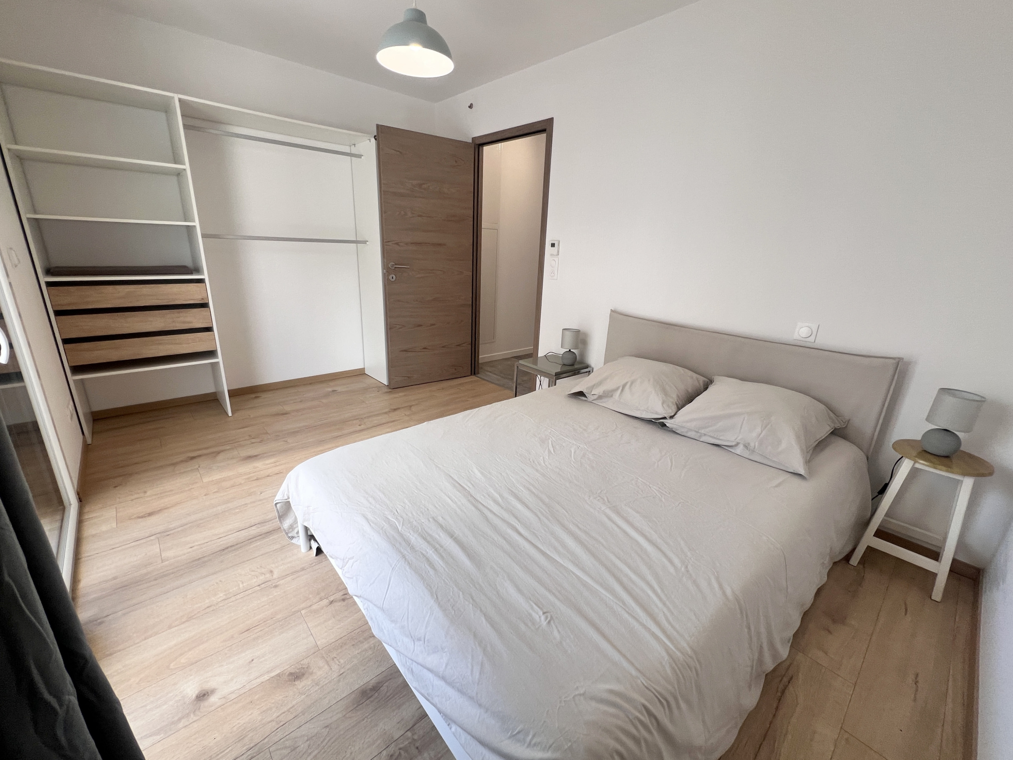 Cet appartement se compose d'une pièce de vie lumineuse avec cuisine équipée, grande chambre avec placard, le tout ouvrant sur une belle terrasse de 12m2 exposée Est et une grande salle de bains / WC suspendu. Chauffage individuel au gaz, vendu avec une cave et un parking collectif.