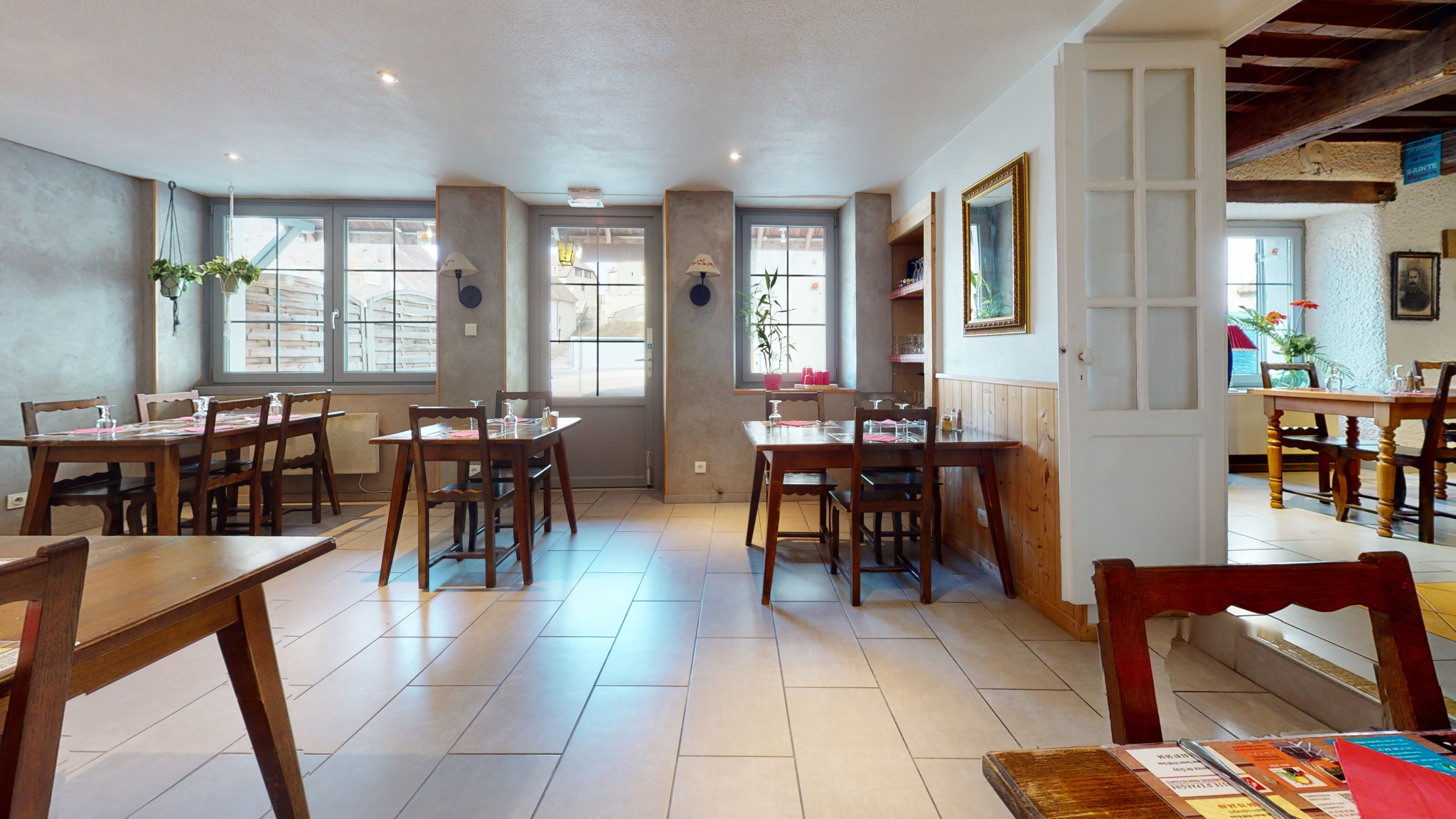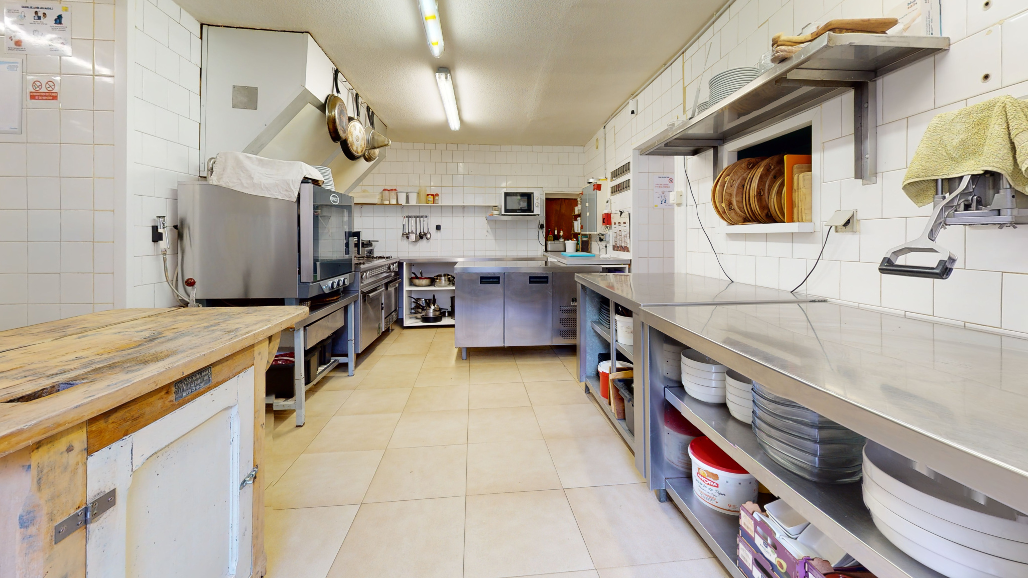 En complément du fonds de commerce, vous avez la possibilité d'acquérir en sus l'ntégralité de l'ensemble immobilier composé du restaurant, d'un appartement de 100 m2 à l'étage pouvant servir de logement de fonction ou à usage locatif et d'un garage avec celllier non attenant de 34 m2 environ.
