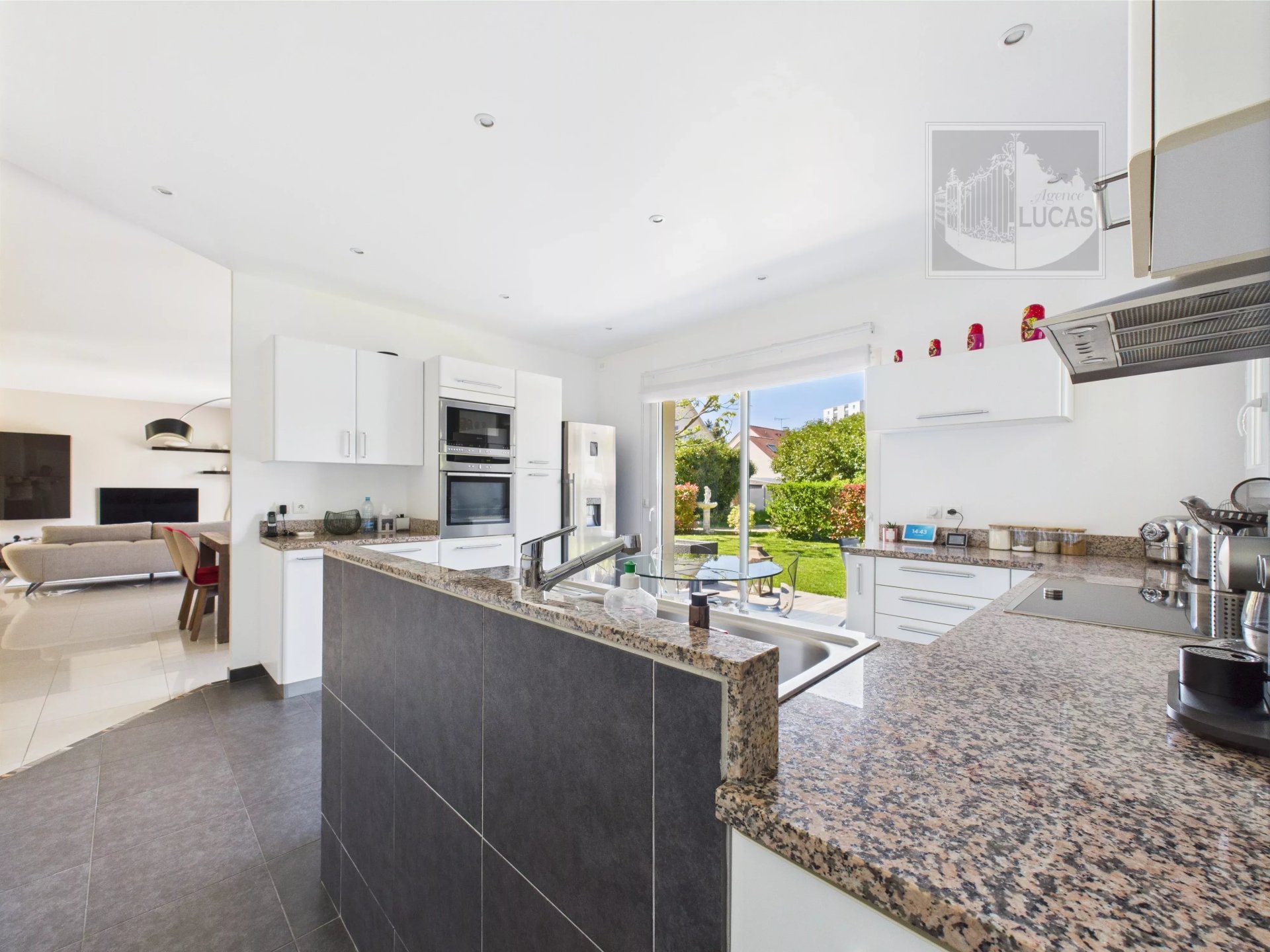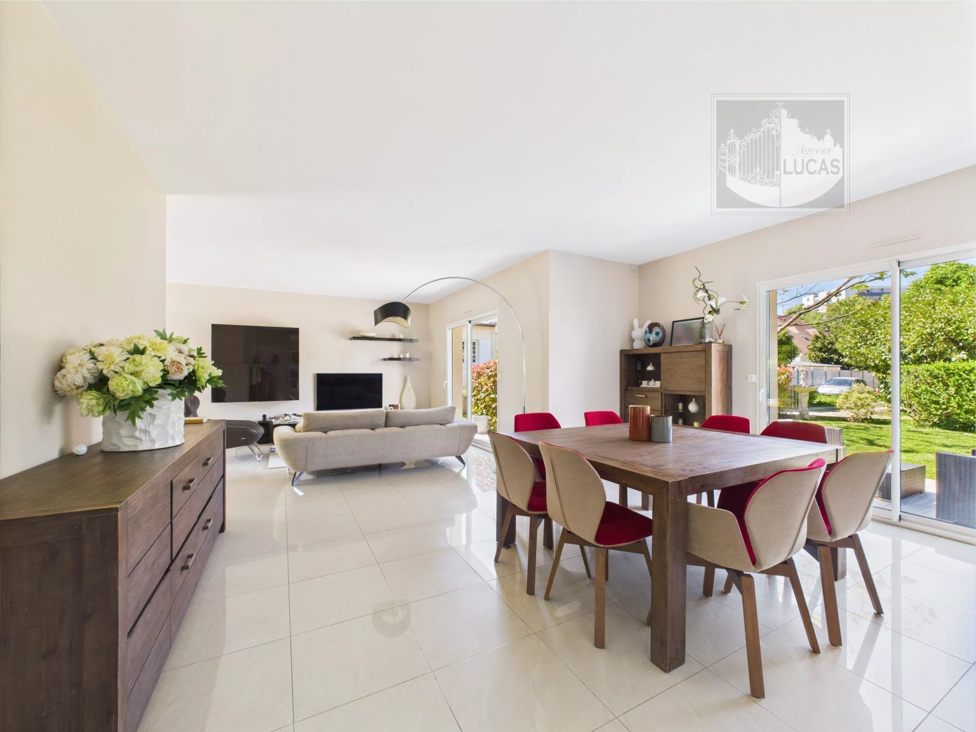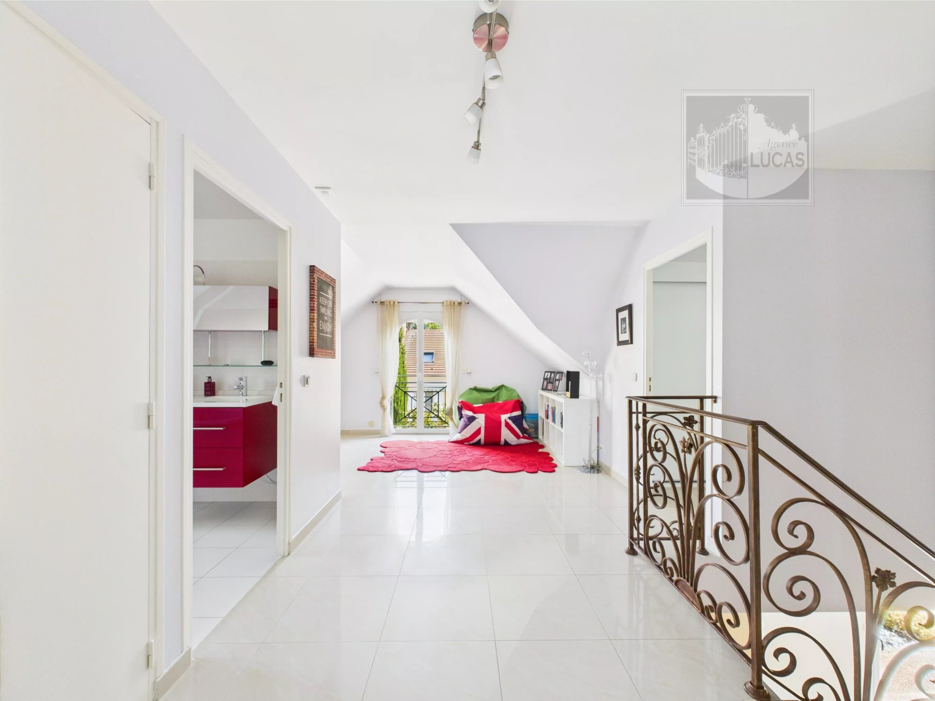 Dans un secteur calme à 15 min du RER, belle maison moderne, lumineuse et en excellent état proposant des prestations haut de gamme, édifiée sur 665 m² de terrain. Composée d'un rez-de-jardin : entrée, salon de 50 m² donnant de plain pied sur le jardin, cuisine ouverte sur le salon, chambre avec dressing et salle d'eau, toilettes. A l'étage : grande mezzanine distribuant 4 chambres, salle de bains avec douche et baignoire, toilettes. Garage et stationnements extérieurs.
