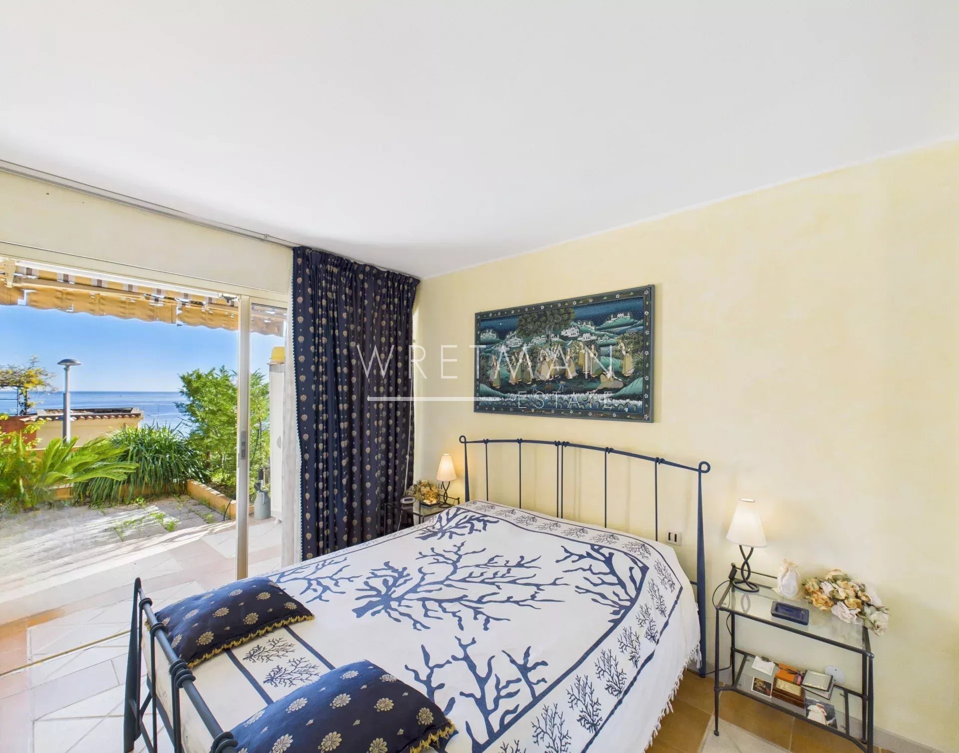 Cet appartement comprend, un vaste séjour avec une cuisine toute équipée (possibilité d’ouvrir complètement sur le séjour), ainsi que d’une grande chambre avec accès direct à une superbe terrasse de plus de 40 m² offrant une vue imprenable sur la mer, le tout complété par un petit jardin privatif.