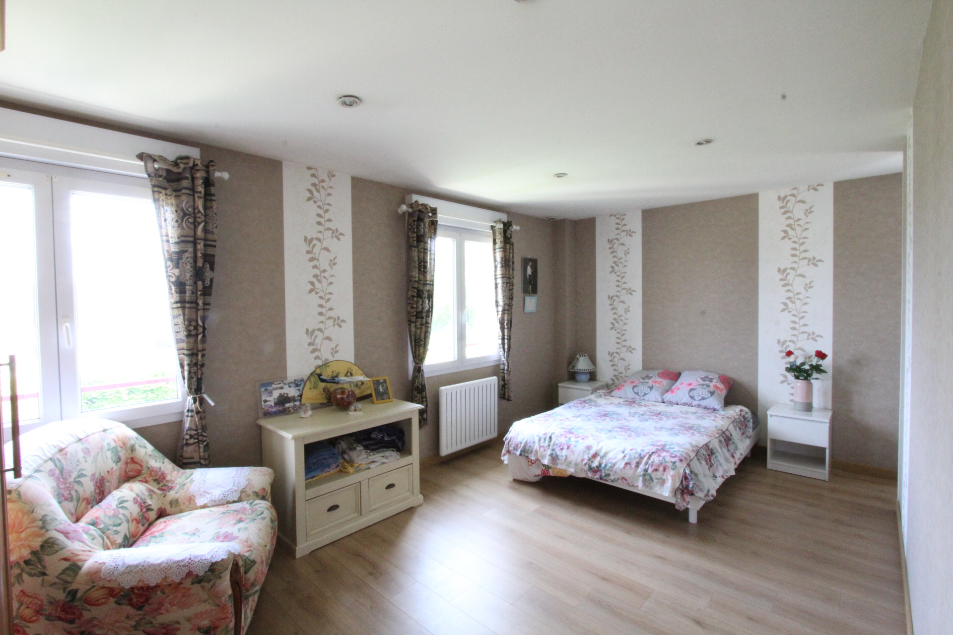 Commerces, gare et écoles à pied, dans un quartier résidentiel apprécié, cette grande maison de 151 m2 habitable de plain-pied est très confortable (ref.9942), construction 2000. Salon avec insert à granulés, le séjour-cuisine de 35 m2 donne sur la terrasse à l'ouest, avec PAC, une chambre parentale avec salle d'eau récente, WC ; buanderie et garage carrelé communiquant. A l'étage, le grand palier bureau dessert trois chambres dont deux avec salle d'eau-WC prinvative. Belle piscine 9 x 5 avec couverture sur rails. Garage atelier séparé de 31 m2, jardin autour très agréable d'environ 1.400 m2, arboré et haies. Tous les détails sur www.immoberrynivernais.fr