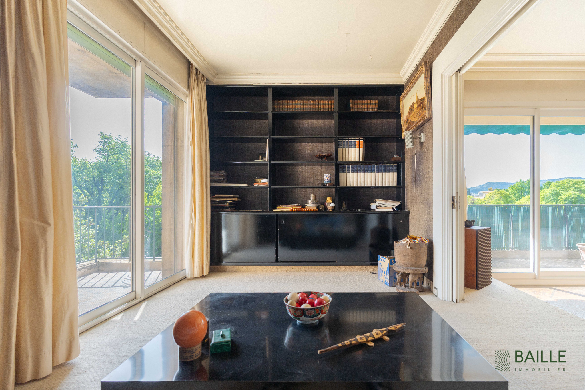 Quartier Carré d'Or - Saint-Giniez, dans une copropriété de qualité, sécurisée, spacieux appartement d'environ 194m2 doté de 3 terrasses (10m2, 7m2 et 5m2). Ce bien offre une triple réception de 93m2 parquetée exposée sud-est et nord-est, ouverte sur 2 terrasses de 10m2 et 5m2. L'espace cuisine comprend un cellier et une cuisine ouverte sur une loggia, possibilité de créer la cuisine dans le séjour. Le côté nuit est doté d'une suite parentale avec salle de bains (19m2), de 3 chambres (17,12 et 12m2) dont une ouverte sur une terrasse. Au centre de l'appartement : une salle de bains, un cellier, 2 wc et nombreux rangements.