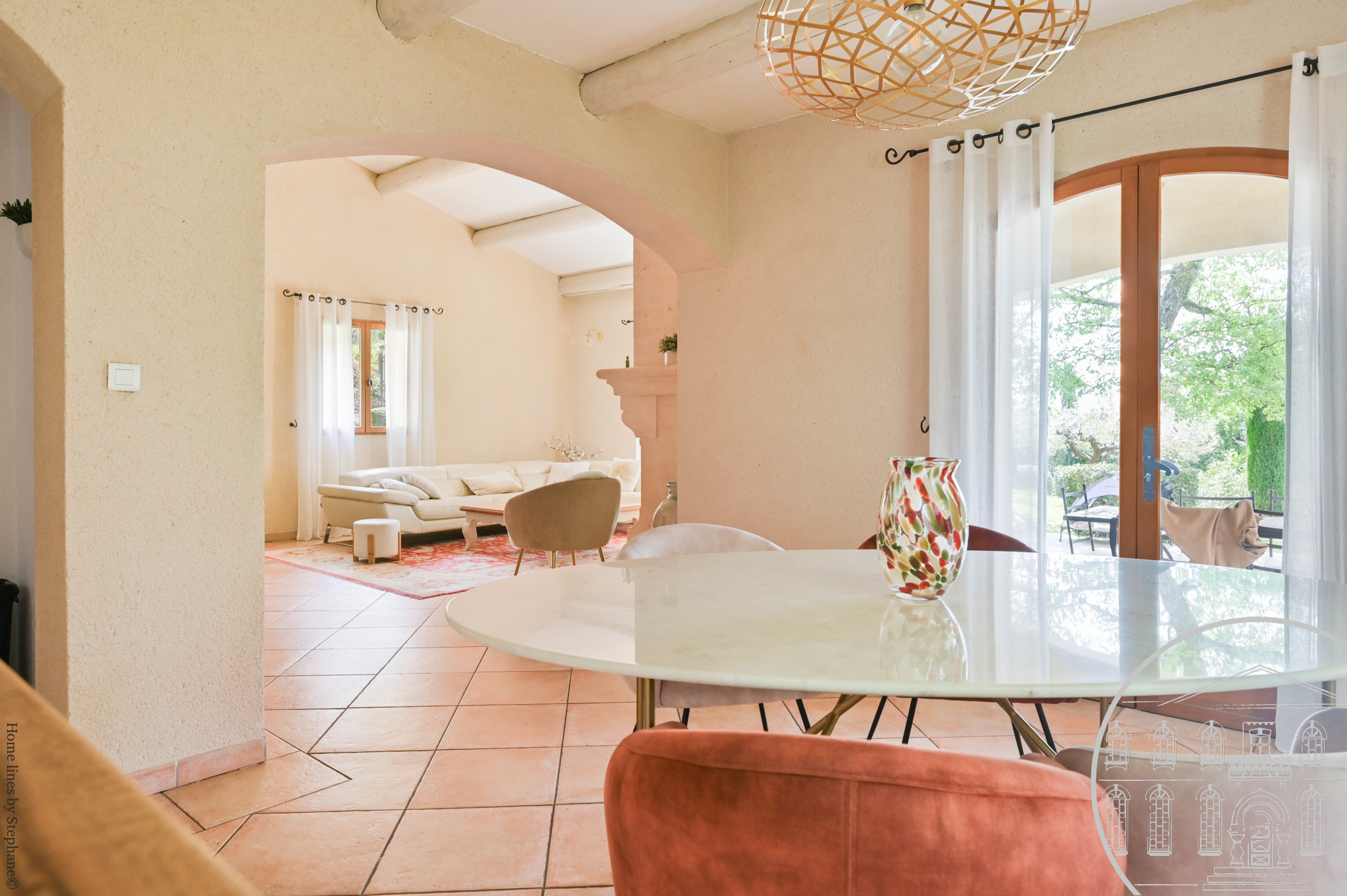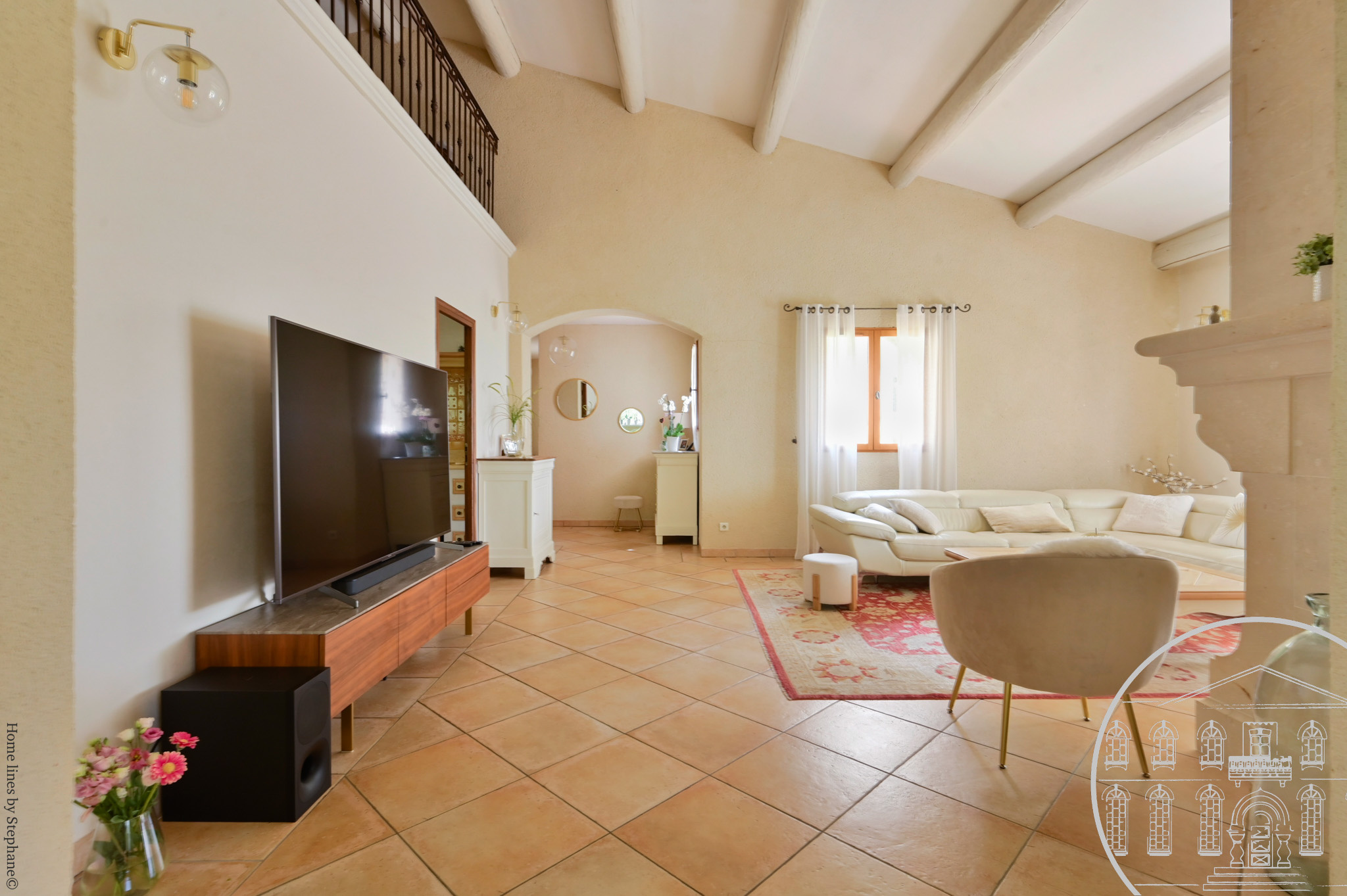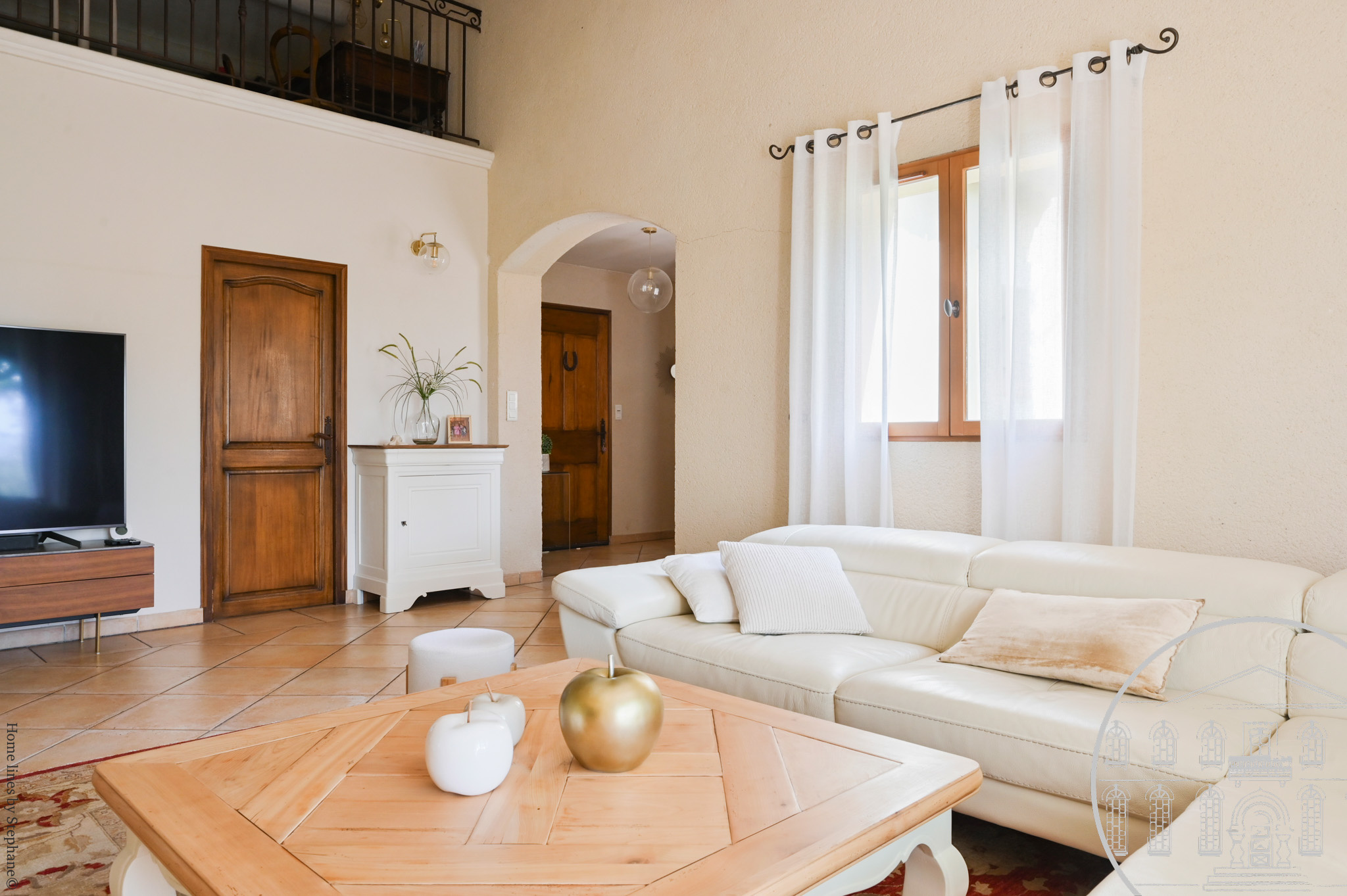 Nichée au coeur d'une parcelle boisée de 5 000m2 env., VOLTAIRE immobilier vous invite à découvrir cette belle propriété provençale. Elle se compose d'une villa principale de 155m2 de plain-pied et d'un très beau T2 de 40m2 env.. La maison, construite au milieu des années 90, est une belle construction traditionnelle, avec de beaux matériaux ( fer forgé , pierre de taille...), très chaleureuse et confortable, c'est un véritable havre de paix pour la famille. Elle vous offrira un vaste salon-séjour que surplombe une belle mezzanine, une cuisine indépendante avec son office donnant sur le garage de plus de 30m2, 3 chambres, une buanderie, une salle d'eau et un wc séparé. A l'extérieur, le magnifique jardin accueille une belle piscine à débordement avec sa plage baignée de soleil et sa cuisine d'été avce four à pizza et barbecue. Totalement indépendante, une confortable maison d'invités accueillera la famille, les amis de passage ou pourra loger un adolescent ou un parent que l'on veut garder près de soi.Chauffage au sol, cheminée et espace nuit climatisé. Nombreux stationnements possibles dans la propriété. A découvrir sans tarder avec VOLTAIRE Immobilier !