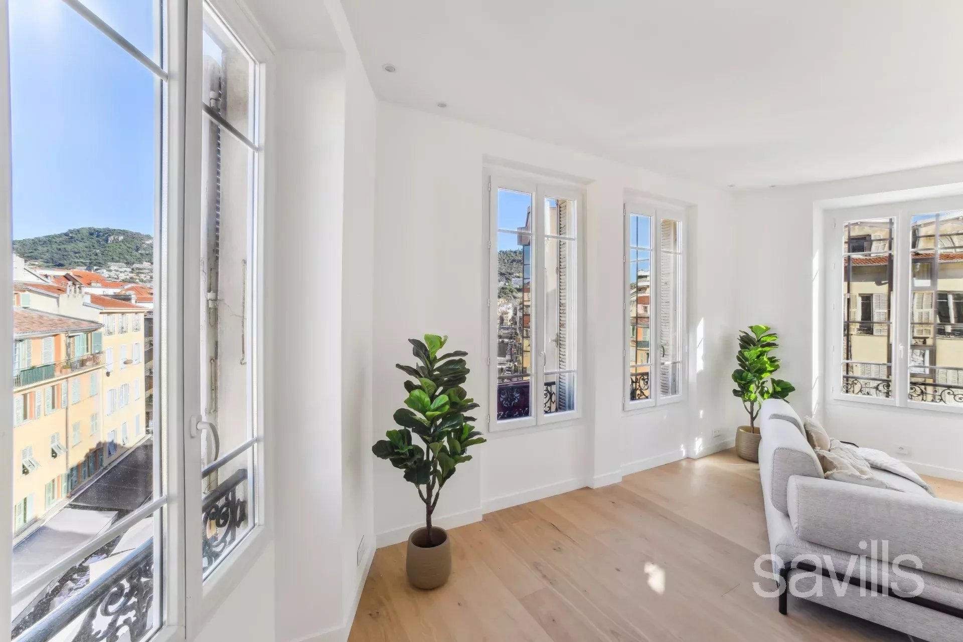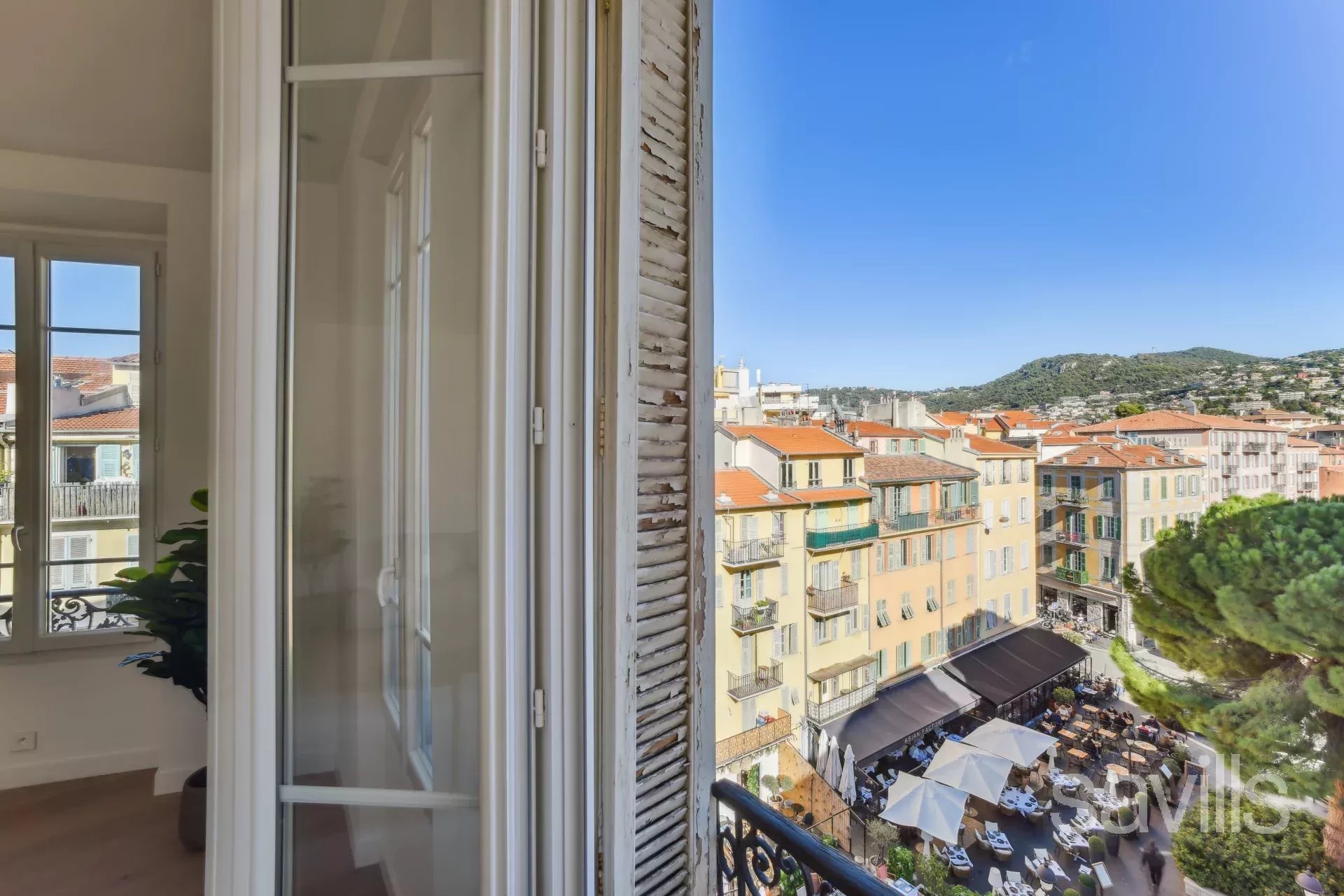 Dans un immeuble ancien, en avant dernier étage, cet appartement de cinq pièces, baigné de lumière, offre une vue panoramique sur la place du Pin.