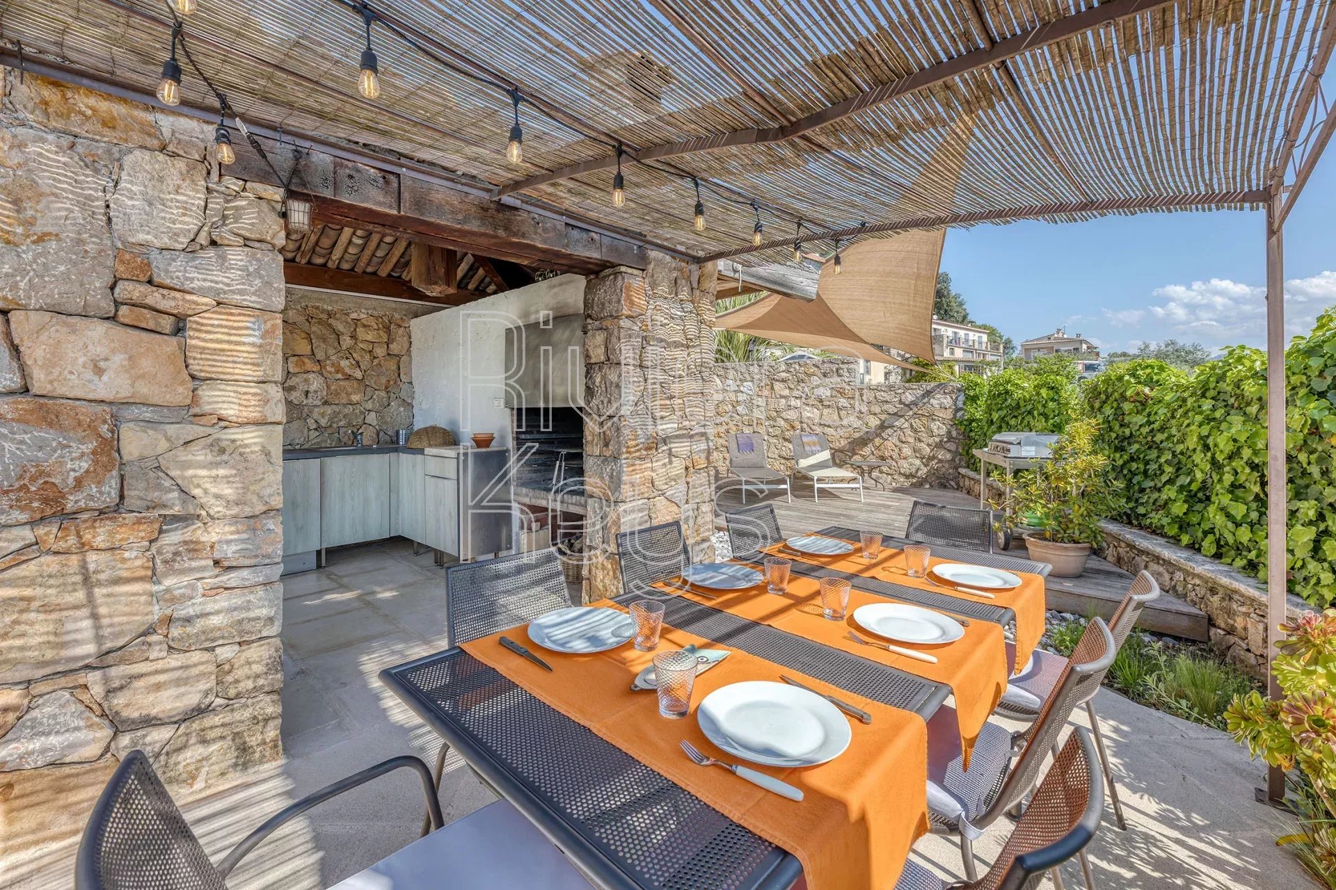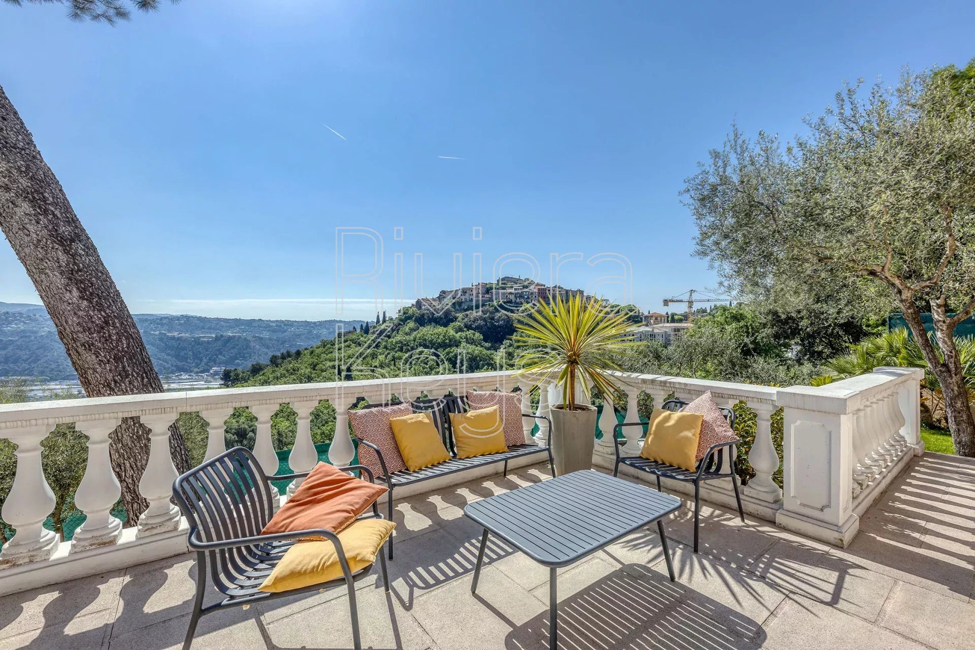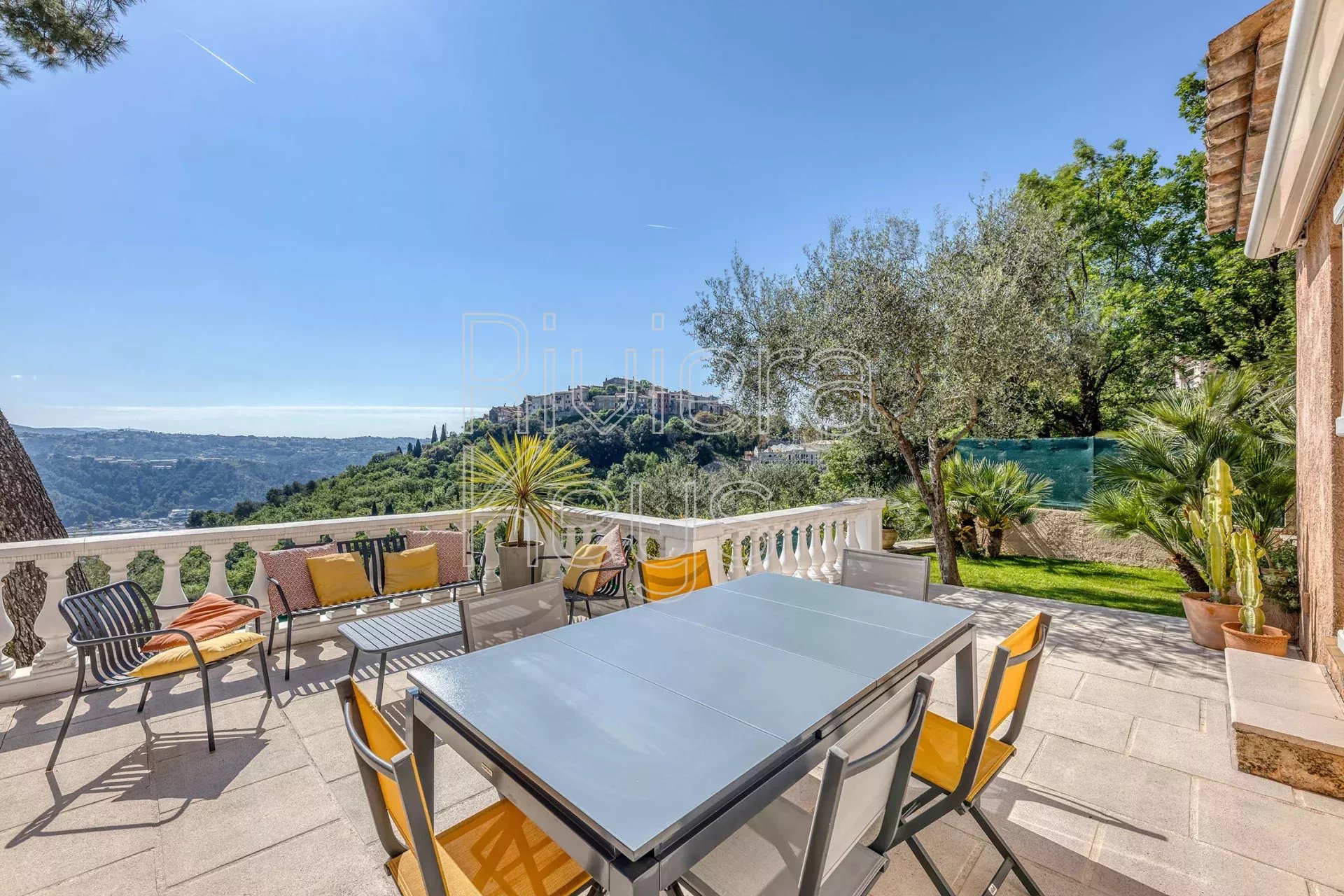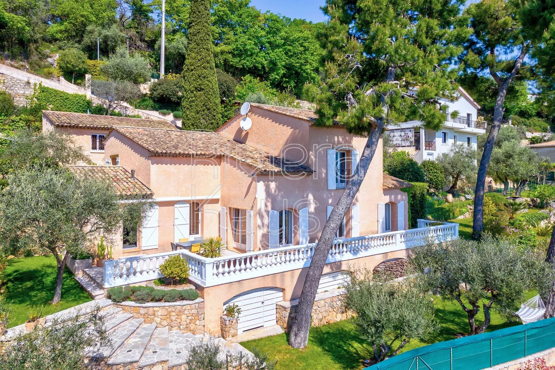 À seulement 17 km de Nice et à proximité immédiate du charmant village de Gattières, cette villa entièrement rénovée avec goût séduit par son élégance et son atmosphère paisible. Implantée sur un magnifique jardin paysager de 1 560 m² planté de cyprès, oliviers, citronnier, abricotier, grenadier, orangers et de massifs fleuris, elle offre un cadre de vie idyllique.