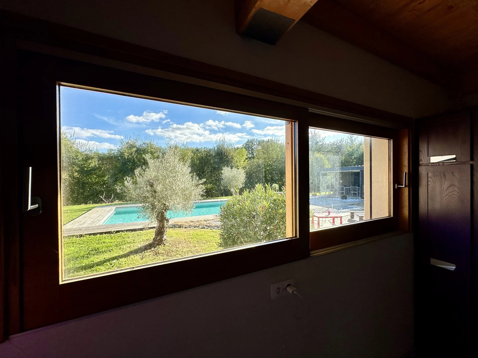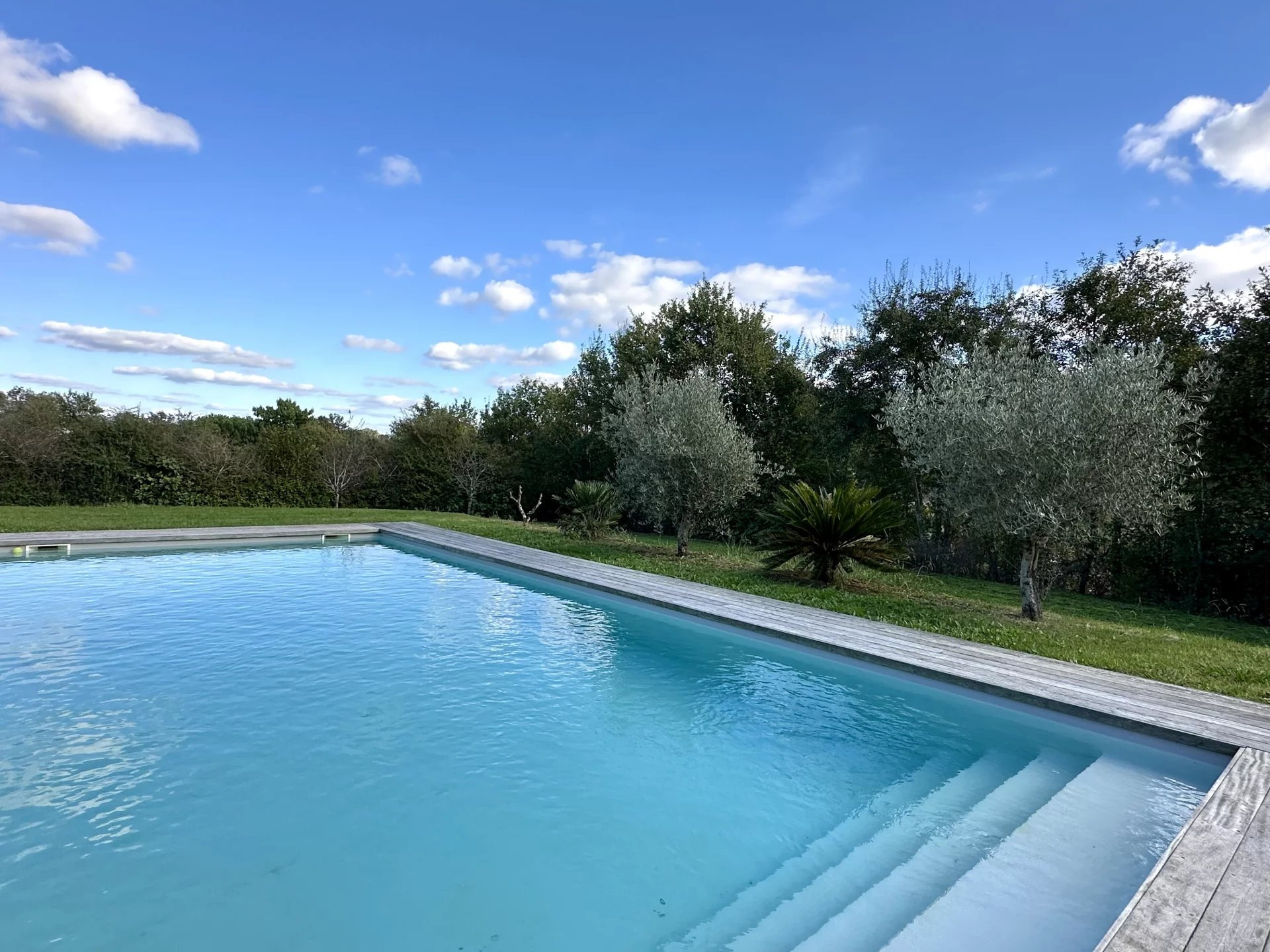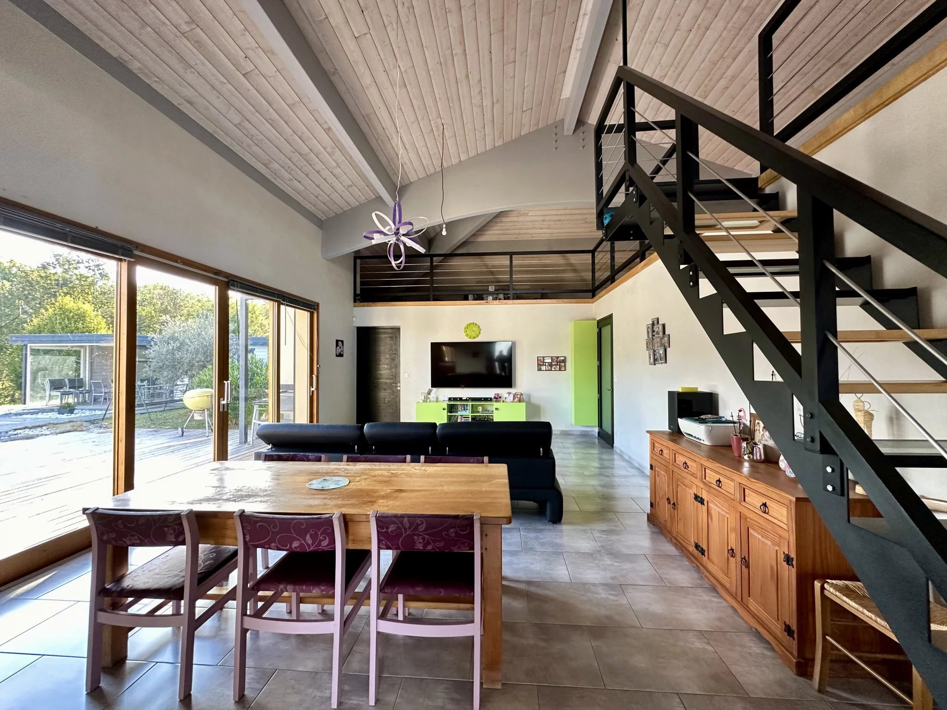 Dans un environnement champêtre entre Gimont et Mauvezin, venez découvrir cette maison contemporaine de 2010 de type 6 de 198m2 environ (260m2 au sol) sur une parcelle arborée de près de 4000m2 avec piscine, pool-house et carport. Les prestations sont de grande qualité : brique monomur, isolation en fibre de bois, fenêtres en chêne et portes en pin massif, domotique, aspiration centralisée, chauffage au sol avec PAC et chauffe-eau thermodynamique? Léntrée s?ouvre sur léspace de vie lumineux avec cuisine ouverte. Le séjour déplafonné avec léspace mezzanine qui en fait le tour offre un volume très appréciable et chaleureux avec la charpente apparente. Léspace nuit offre 3 chambres dont une avec salle déau, un cellier, une grande salle de bains, ainsi qu?une belle chambre parentale avec dressing. Côté extérieur, la piscine au sel 11x5 et son pool-house invitent à la détente et à la convivialité dans un espace préservé ! Un carport pour 3 voitures, un garage (à terminer) et un abri jardin complètent le bâti. Un bien idéal pour une famille recherchant la tranquillité !