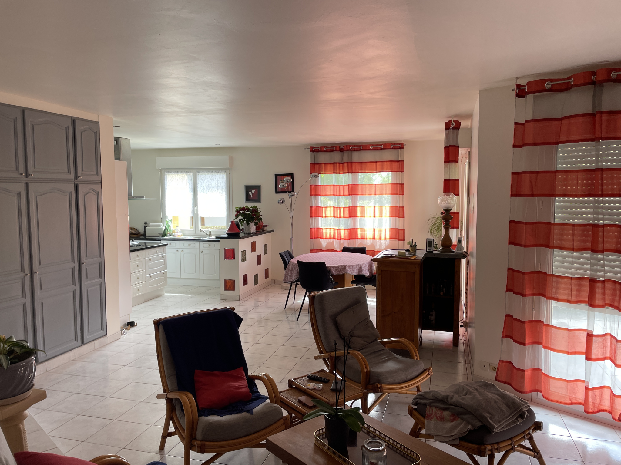 Au rez-de-chaussée, salon séjour de 40 m2, cuisine ouverte équipée et aménagée, bureau, deux chambres dont une avec salle d'eau, salle de bain.