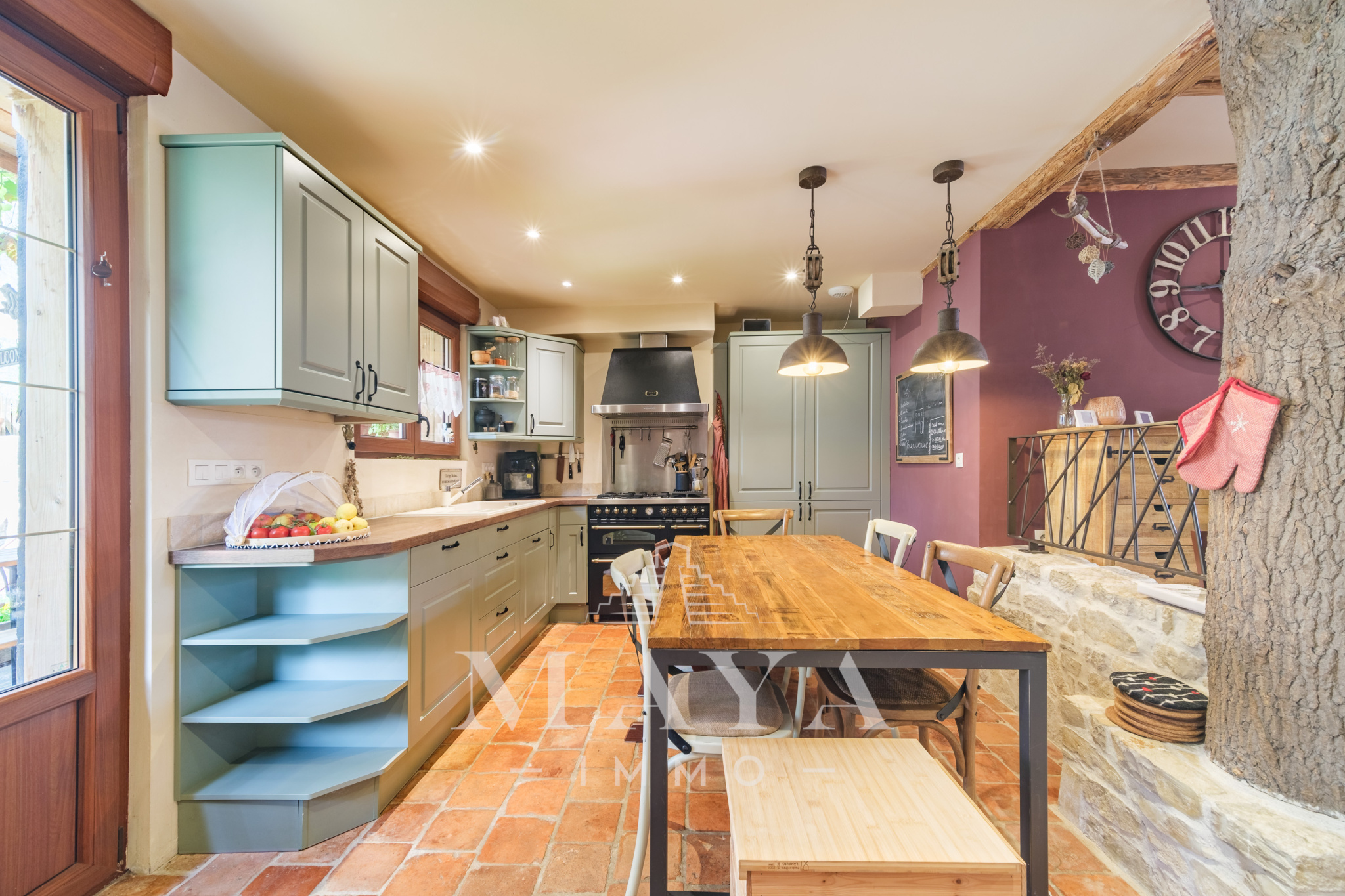 Points techniques : maison construite en 1750 et entièrement rénovée il y a quelques années, fenêtres double-vitrage en PVC avec imitation bois, volets PVC électriques, façade refaite, chauffage au gaz installé en 2018, chauffage au sol sur la moitié de la maison, plomberie et électricité refaite en 2020, aspiration centralisée, parquet massif au sol, taxe foncière de 900EUR par an.