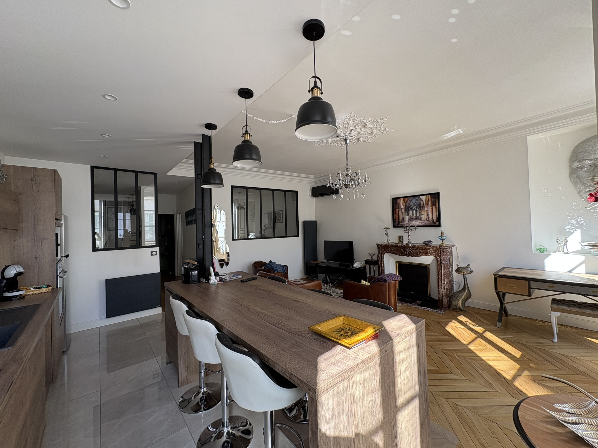 Parquet point de hongrie, hauteur sous plafond, cheminée, le coup de coeur est assuré.