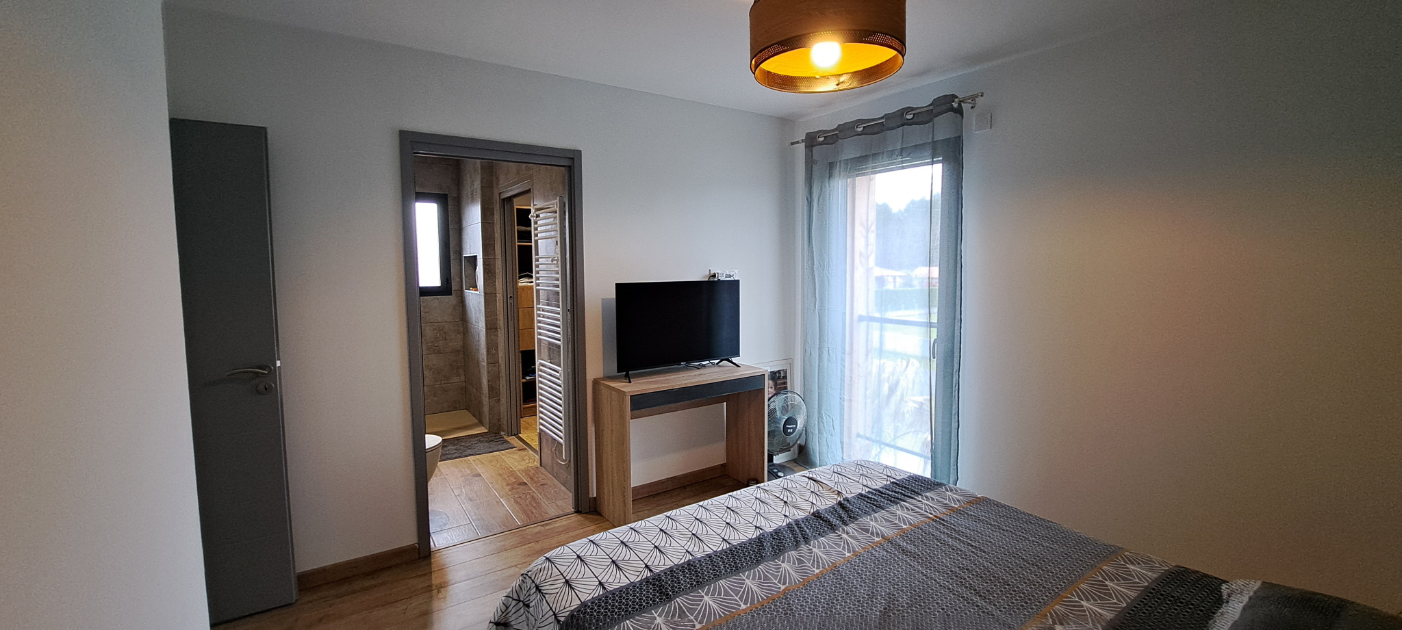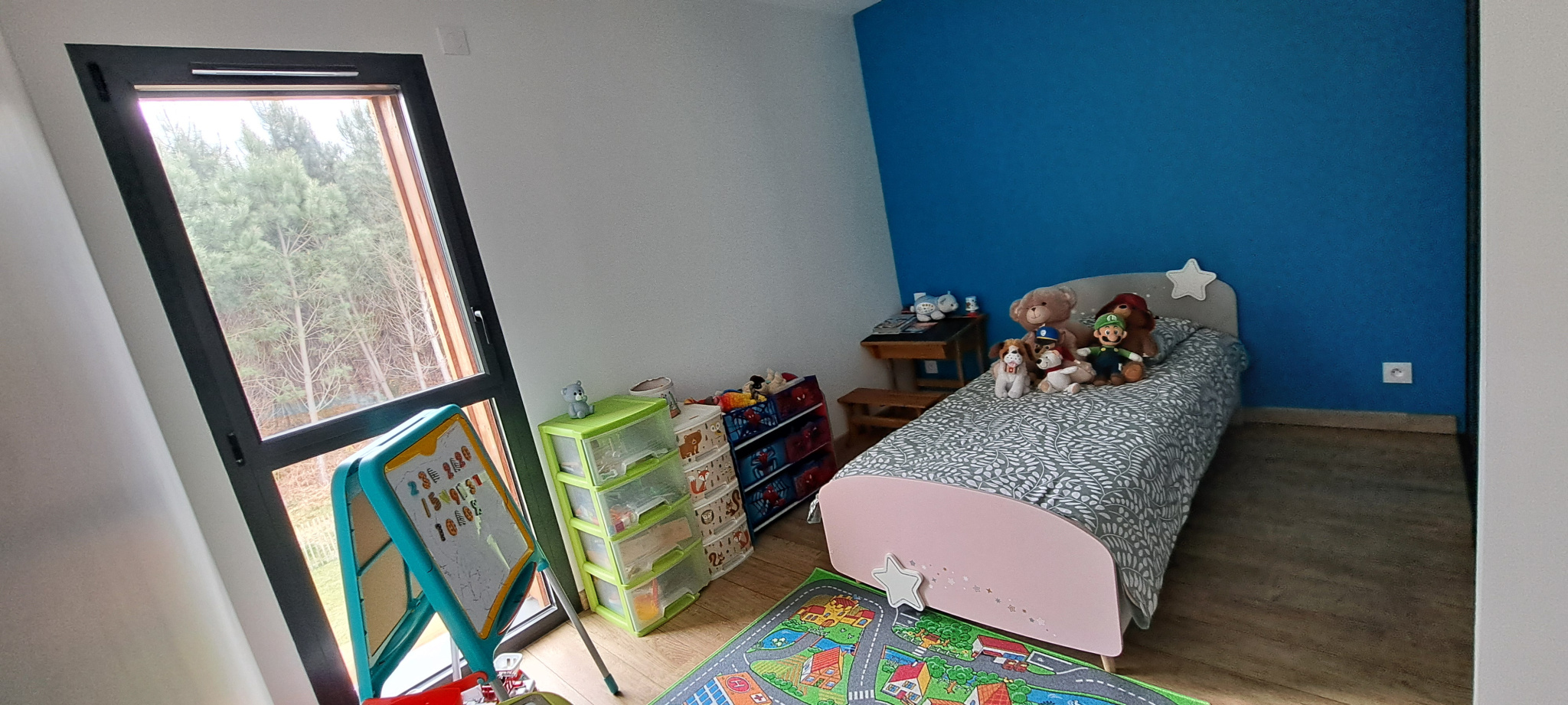Cette maison R+1 de 2023 comprend au Rdc, une entrée avec WC indépendant, un cellier, un grand séjour avec une cuisine toute équipée donnant sur une belle terrasse avec piscine. Un garage attenant de 35 m2 partiellement isolé et facilement transformable en surface habitable. A l'étage se trouve une belle suite parentale avec salle d'eau et dressing, deux chambres avec placard de 11 m2 et une salle de bain avec WC. La maison est entirement équipée en domotique Somfy (volets et porte du garage). Le chauffage, l'eau chaude, la climatisation et le portail peuvent être pilotés à distance grâce à une application dédiée.