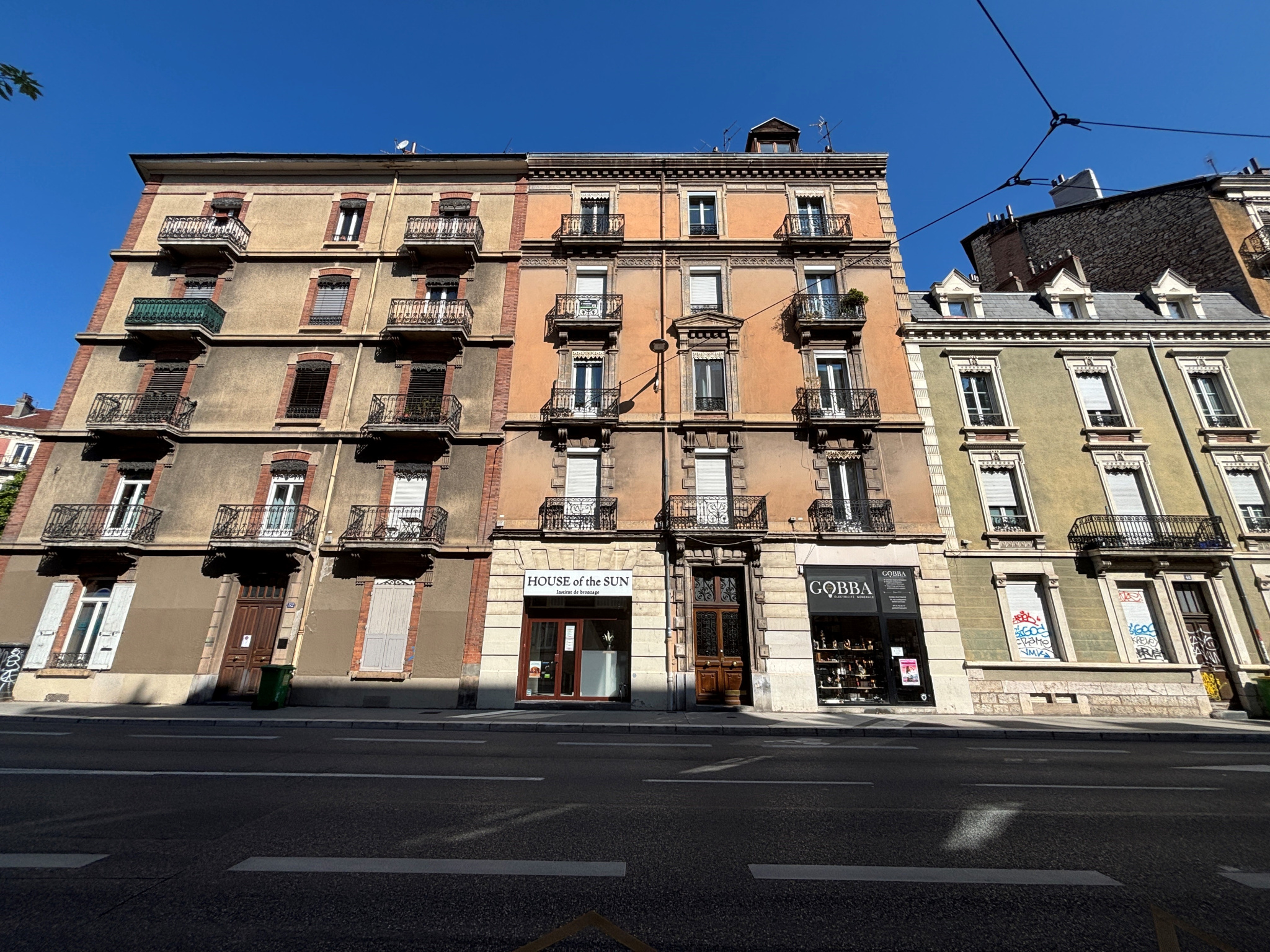 Appartement de 77m2 situé au troisième étage sans ascenseur d'un bel immeuble haussmannien dans le quartier Championnet, à Grenoble.