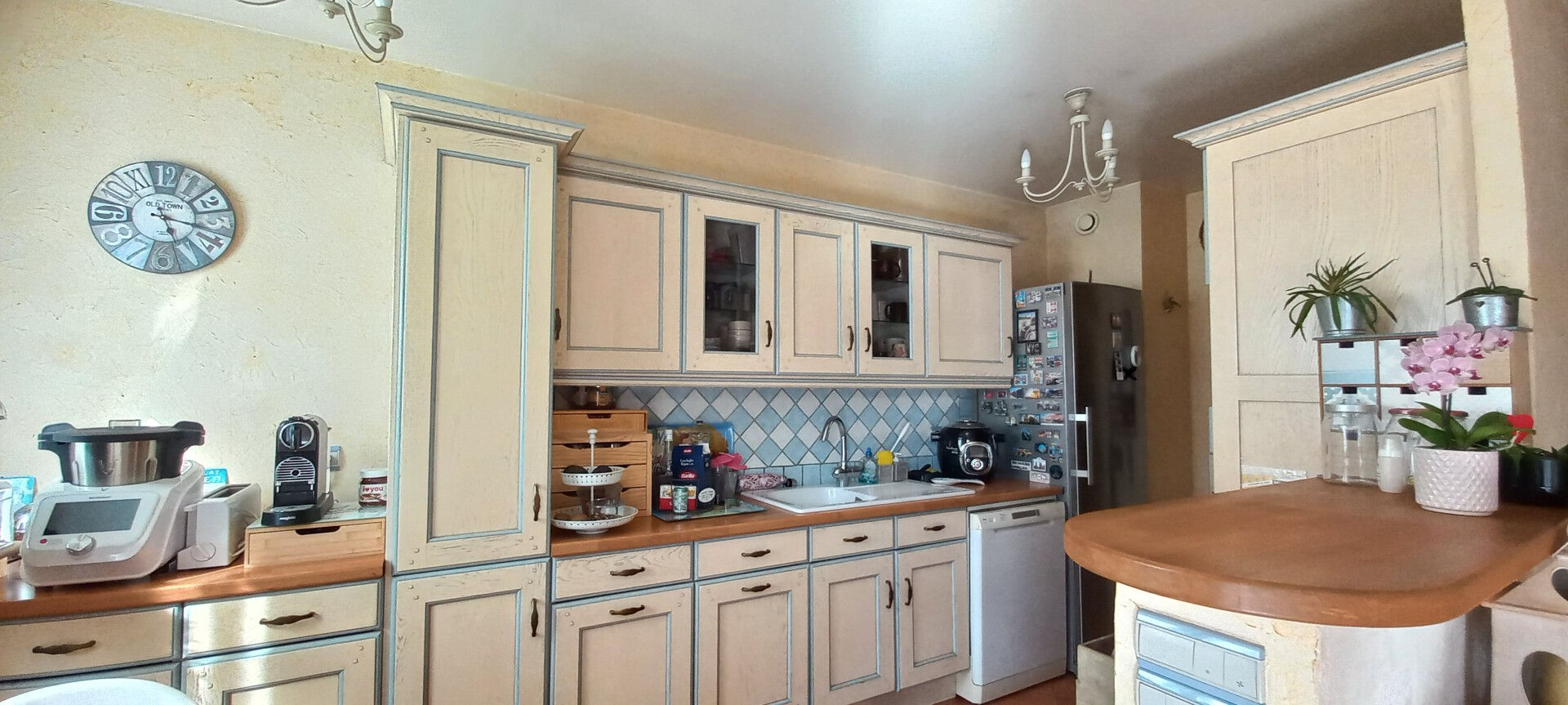 Voici une maison familiale chaleureuse de 116,5 m2 habitables (129 m2 au sol), avec 5 chambres, 2 salles d'eau ou bain, 1 bureau, une cuisine ouverte sur séjour avec cheminée, terrasse.