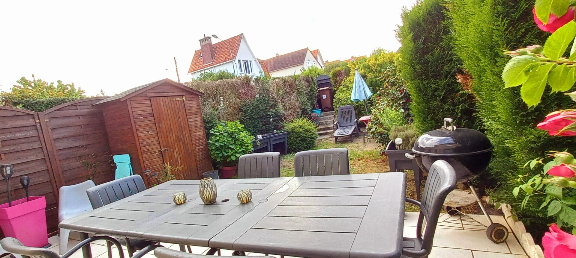 La maison est édifiée sur une parcelle de 157 m2, suffisants pour profiter de la terrasse orientée ouest, et d'un jardin (on y voit déjà les chaises longues et le barbecue, on peut imaginer le trampoline ou tobogan voire une petite piscine ?).