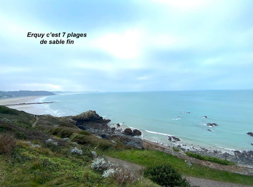 945JT : ERQUY capital de la coquille St Jacques! Au coeur de la ville, à deux pas des commerces et de la plage. Nous proposons un appartement de type 3 situé au 1er étage composé d'une belle pièce de vie orientée plein Sud avec une grande baie donnant sur la terrasse, la cuisine aménagée et équipée, deux chambres, salle de bains et wc séparé. Vous profiterez de faire tout à pieds : les commerces et la plage.