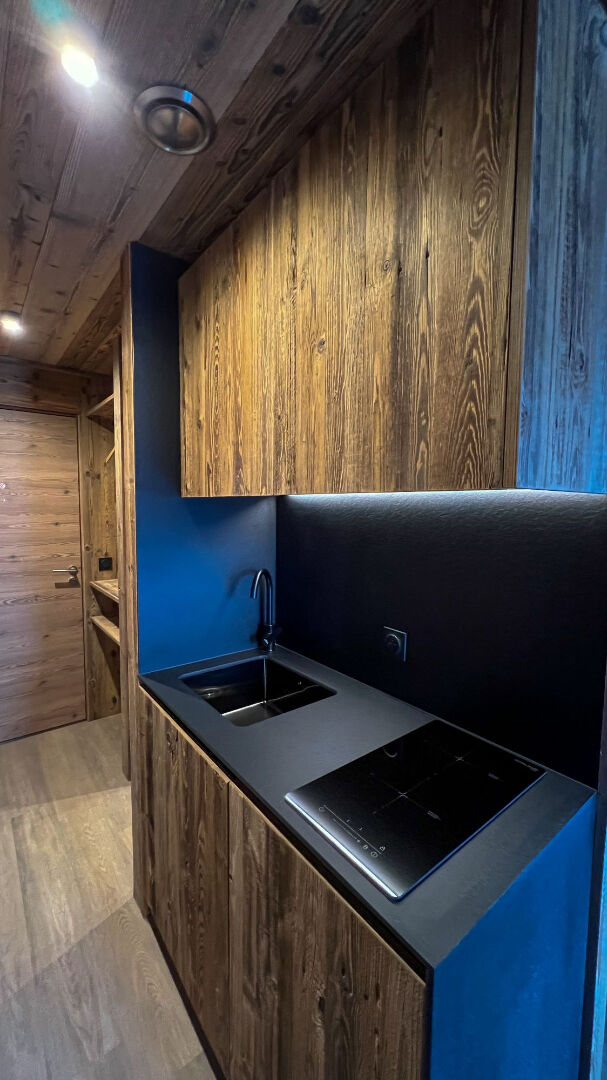 - Une cuisine ouverte, entièrement équipée et pensée pour les espaces réduits.