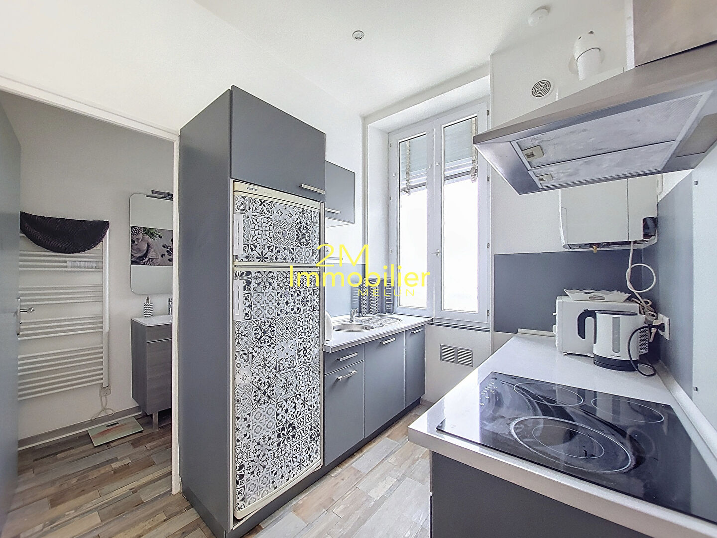 Hall d'entrée à usage privatif avec rangements, palier avec espace mezzanine, cuisine aménagée et équipée, salle d'eau avec wc , séjour et chambre avec rangements.