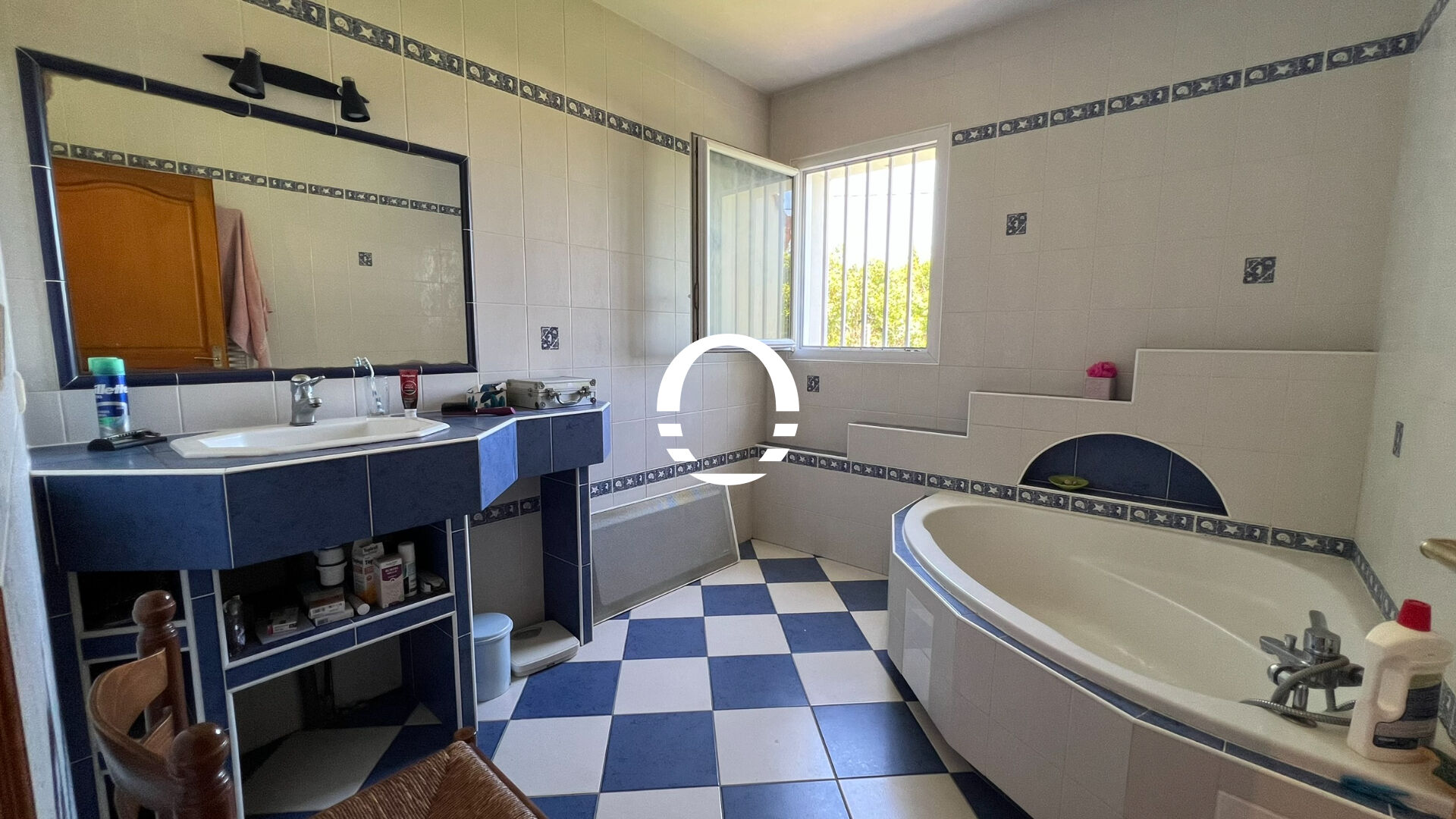 3.9 kms du centre de Pornic , maison plain pied composée d'une belle pièce de vie avec plafond cathédrale dont la superficie de 70m2 env comprend une cuisine aménagée, un poêle à bois le tout s'ouvrant sur une grande terrasse orientée sud. Le dégagement avec placard dessert 4 chambres dont une suite parentale avec (salle d'eau, dressing), une salle de bains, wc. Le garage est attenant à la villa . Il existe un abri bois. L'ensemble sur 1000m2 env est arboré et clos en partie.