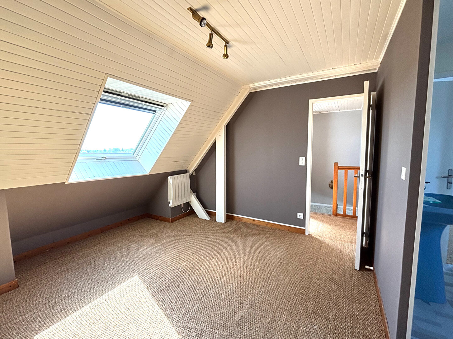 À l'étage, un palier avec rangements sous mansarde, une chambre avec salle d'eau attenante, un bureau idéal pour le télétravail ou une chambre d'appoint avec comble aménagée.