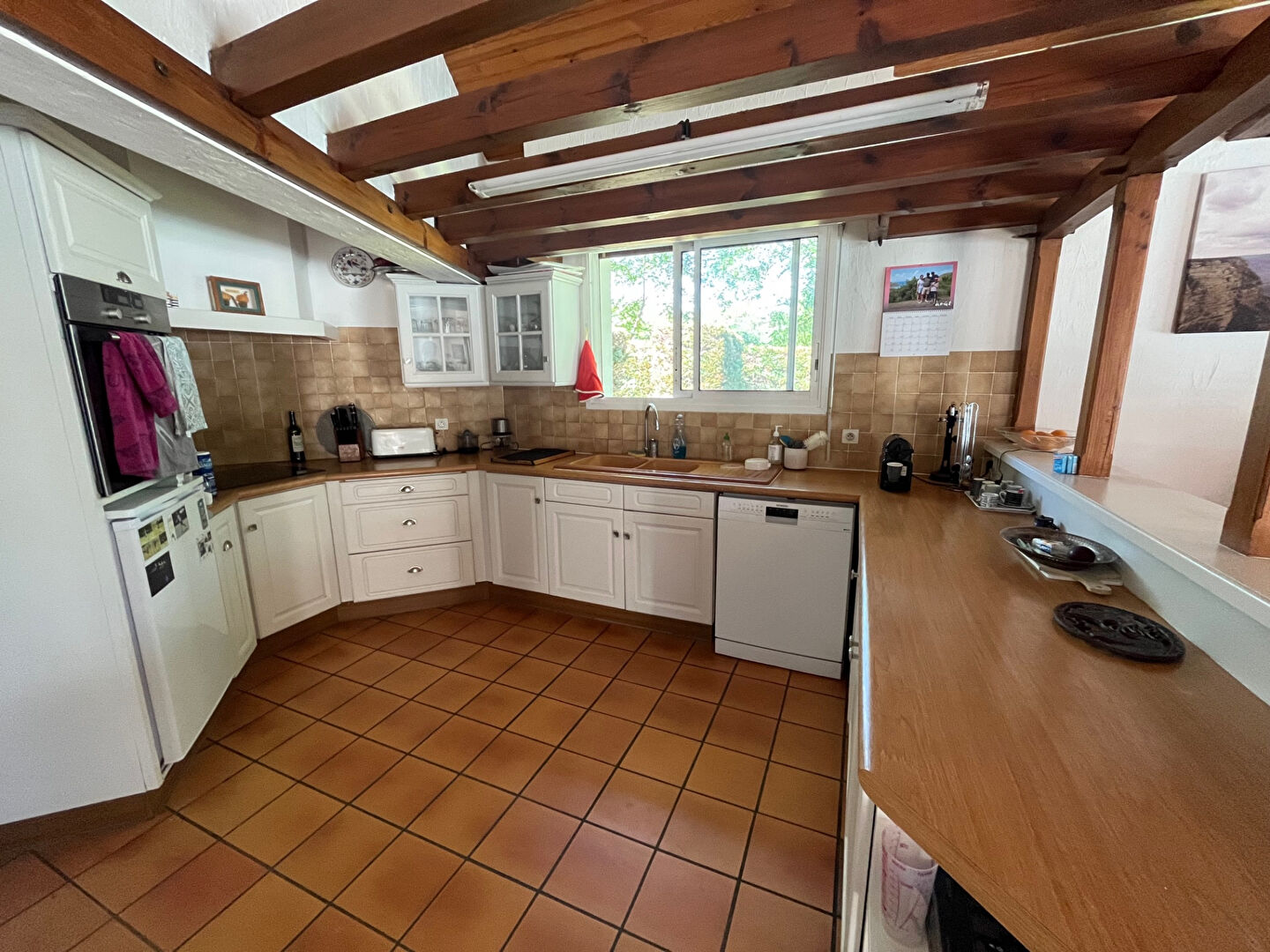 Parfaitement entretenue, elle dispose en rez-de-jardin d'une spacieuse pièce de vie avec cheminée et cuisine ouverte, cellier/buanderie, 3 chambres avec placards, 1 bureau, 1 salle de bains, 1 salle d'eau, 1 wc indépendant.