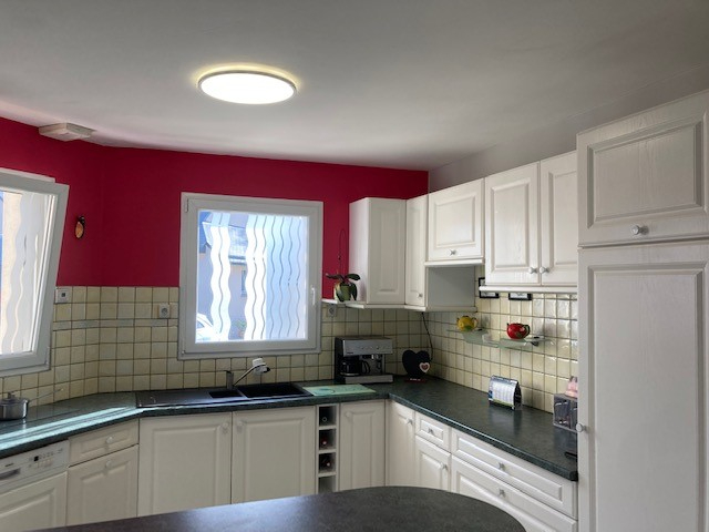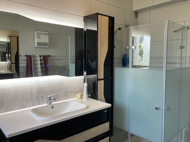 Au rez-de-chaussée : un séjour lumineux, une cuisine ouverte et fonctionnelle, une salle d'eau, un wc, une chambre, un bureau.