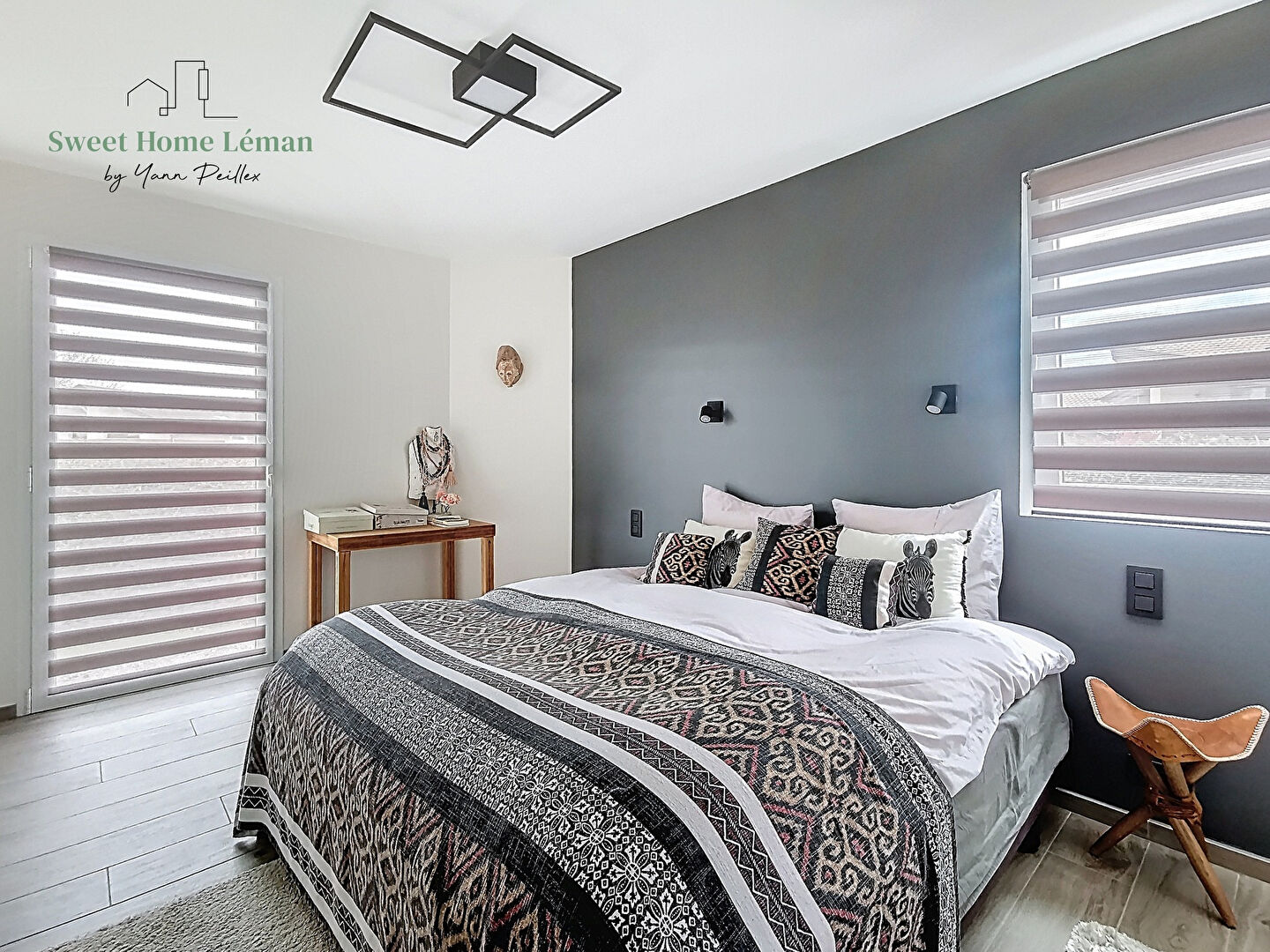 La maison se compose d'une entrée, cuisine équipée ouverte sur séjour/salon, cellier, chambre avec salle d'eau, suite parentale (chambre, dressing, salle d'eau), espace bureau, salle de cinéma/tv, wc;