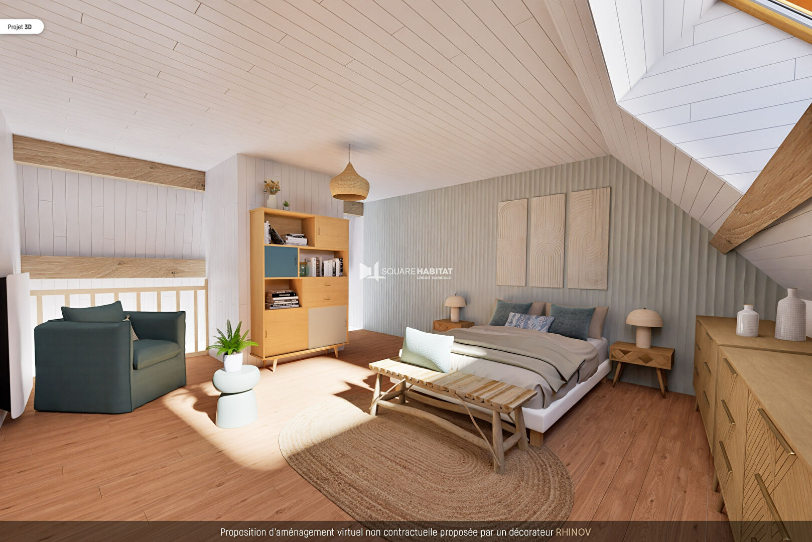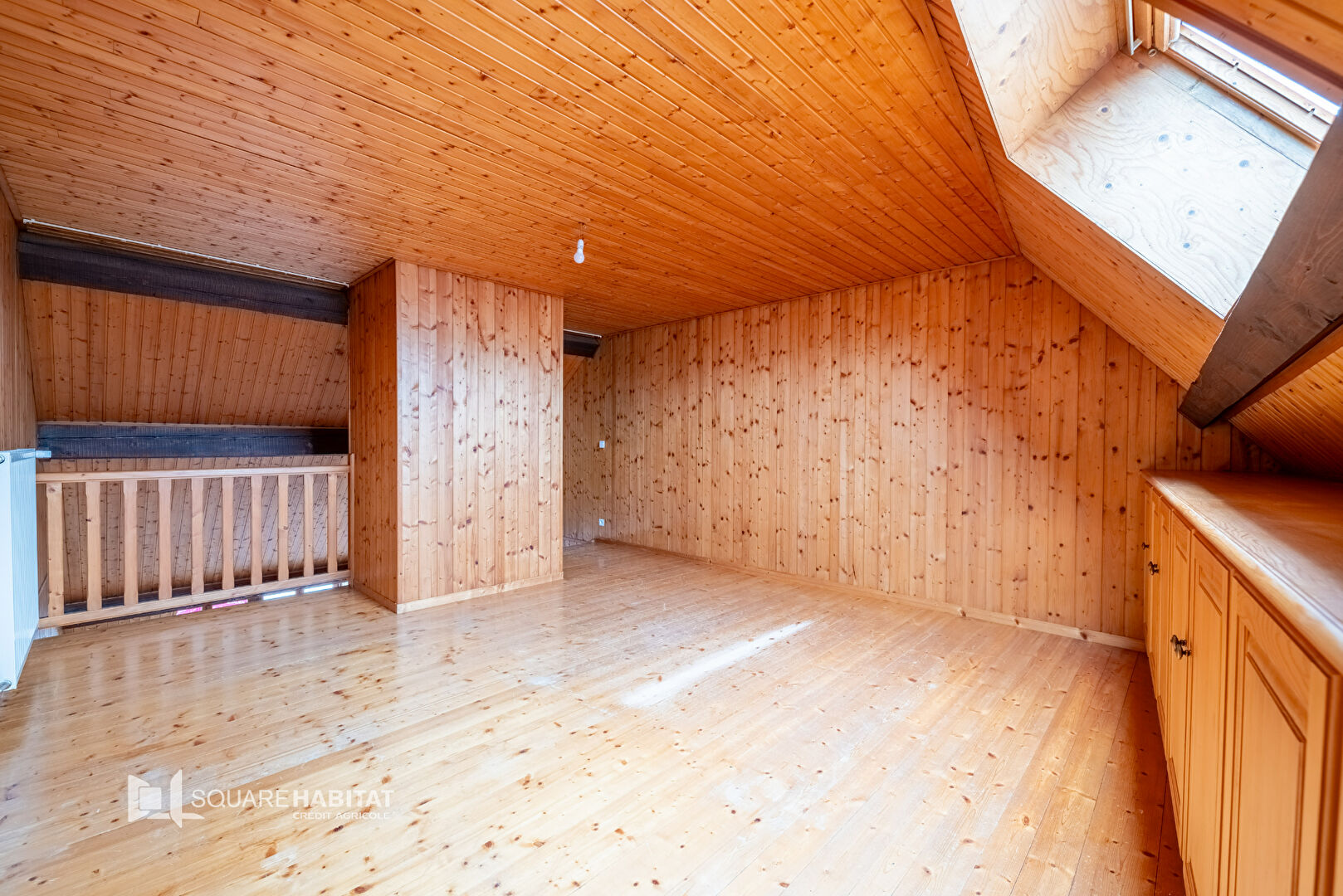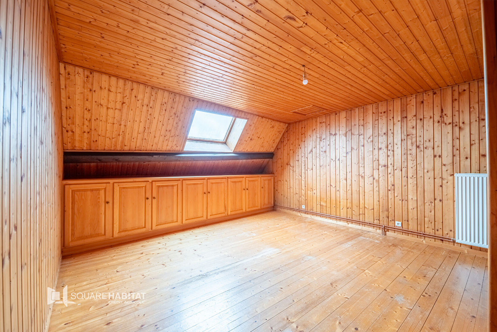 A l'étage, vous trouverez une chambre spacieuse avec de nombreux rangements.