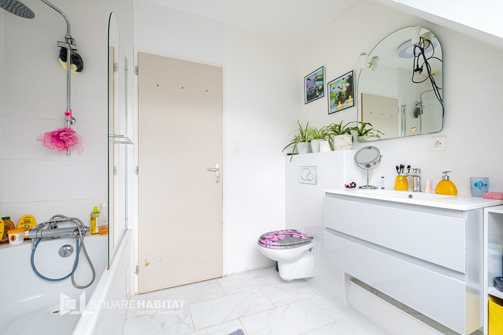 À l'étage, un spacieux palier dessert deux chambres, une salle de bain avec WC, et un grenier aménageable offrant la possibilité de créer une quatrième chambre.