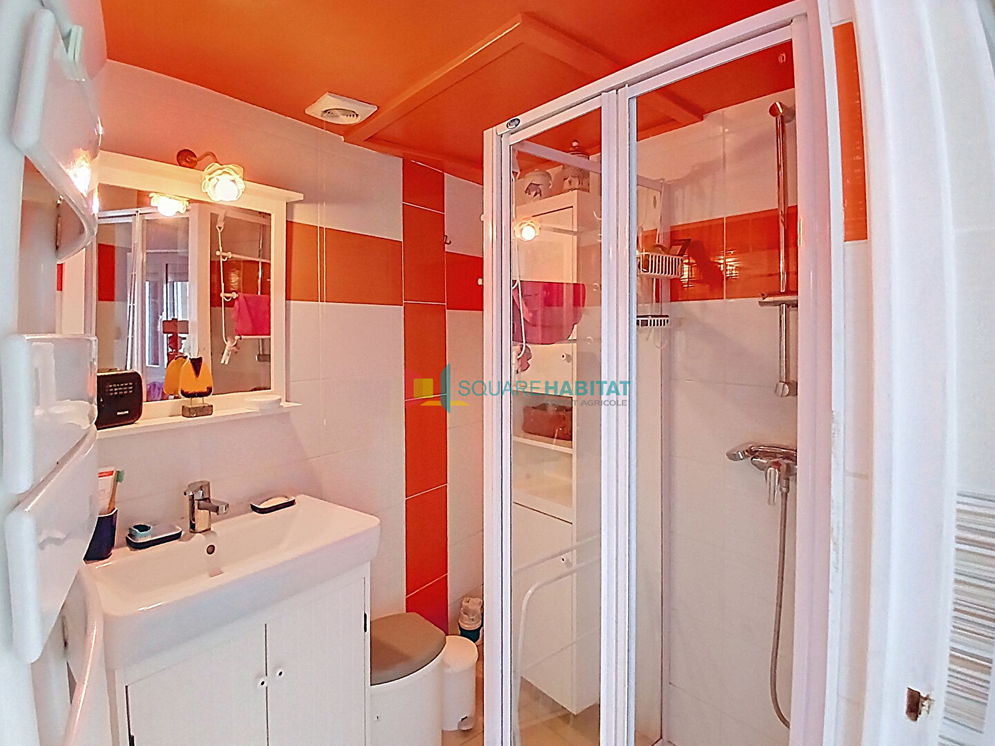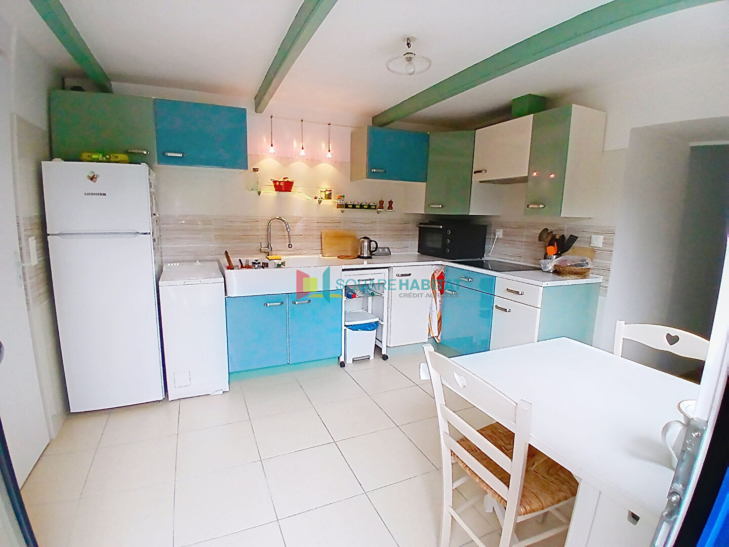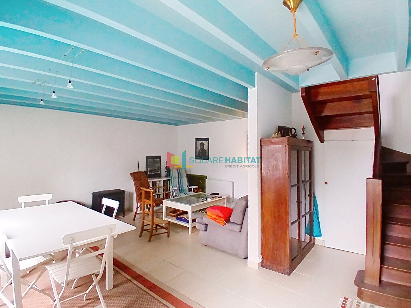 Elle se compose au rez-de-chaussée d'une pièce de vie avec poêle à bois, une cuisine aménagée et équipée, salle d'eau et WC
