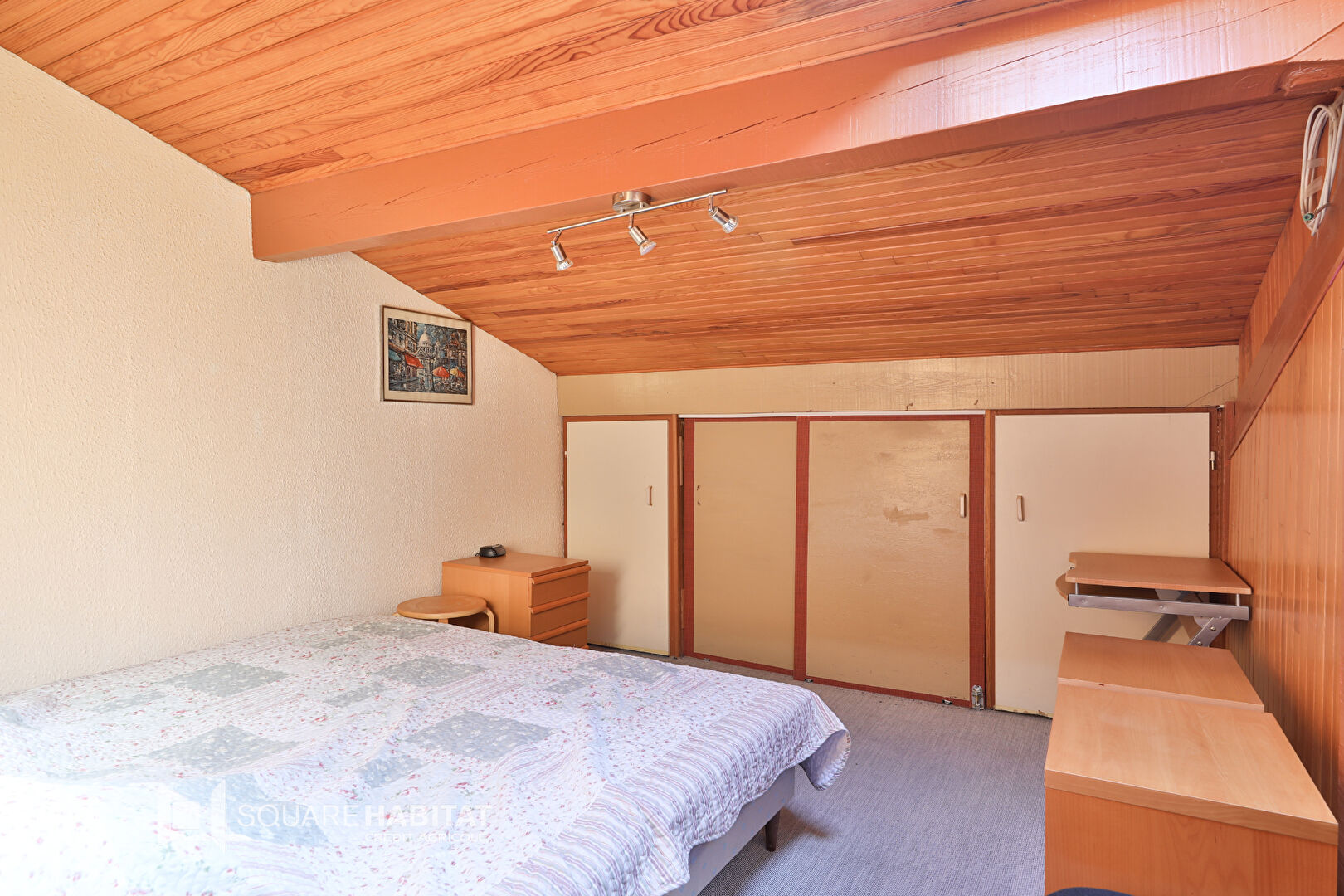 sous rampant, qui offre tout son charme: 2 chambres, un espace bureau/bibliothèque , une salle d'eau, wc séparés.