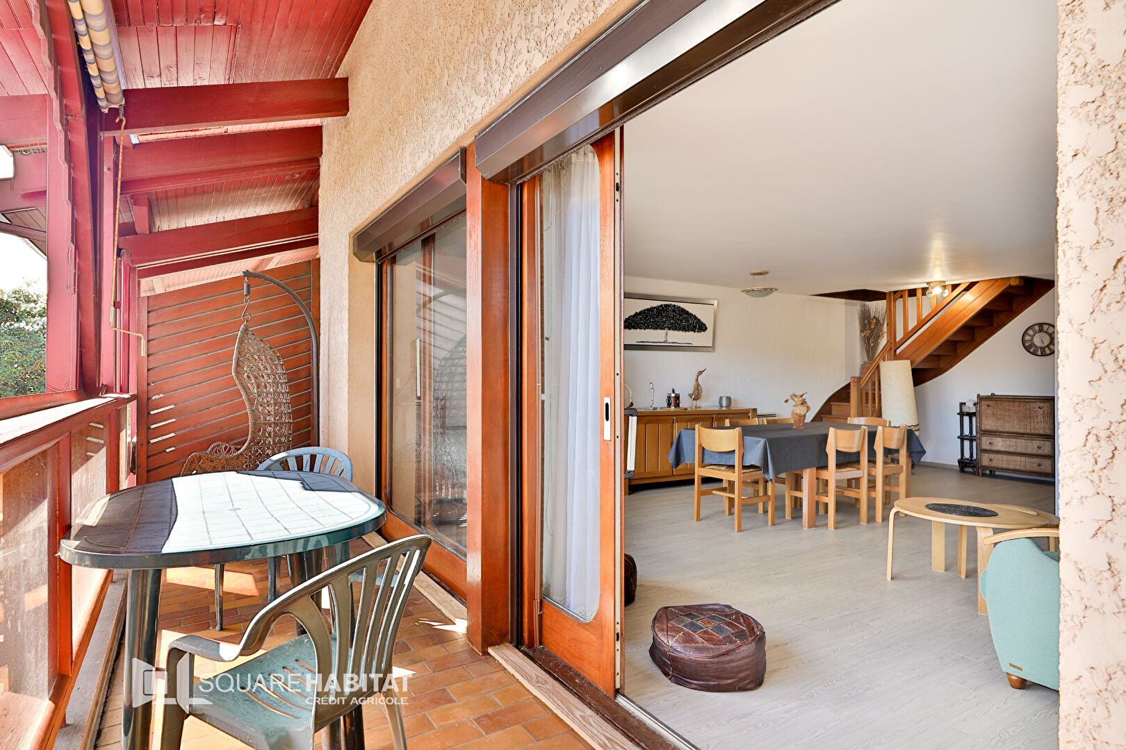 L'ensemble bénéficie également d'une grande terrasse ensoleillée et couverte très agréable pour profiter de son extérieur .