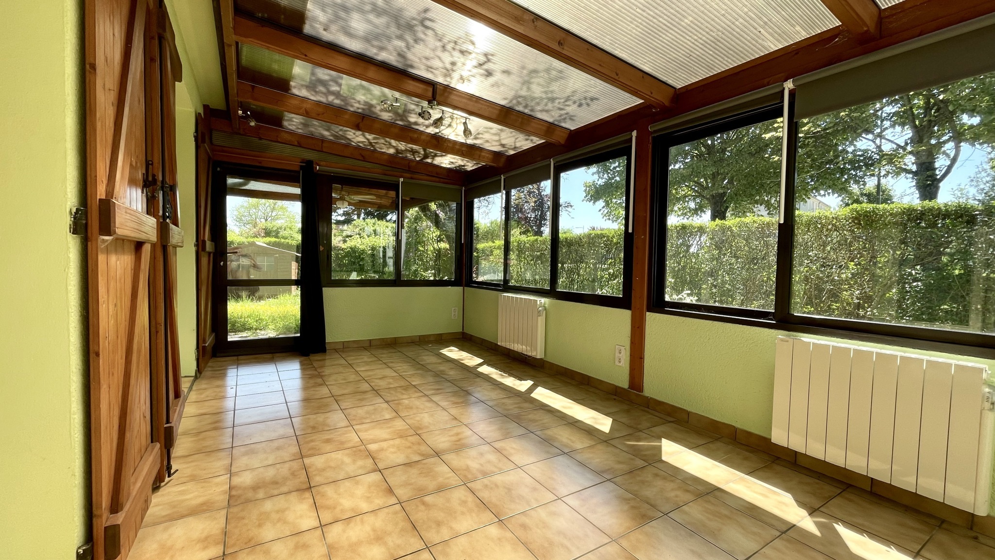 Située dans un quartier calme, cette maison de plain-pied d'environ 100?m² comprend un séjour/salle à manger, une cuisine séparée, deux chambres, une salle de bains et des toilettes indépendantes. Une véranda prolonge l'espace de vie. Edifiée sur un terrain de 480?m², elle offre un jardin agréable, sans gros travaux, mais avec un rafraîchissement à prévoir.