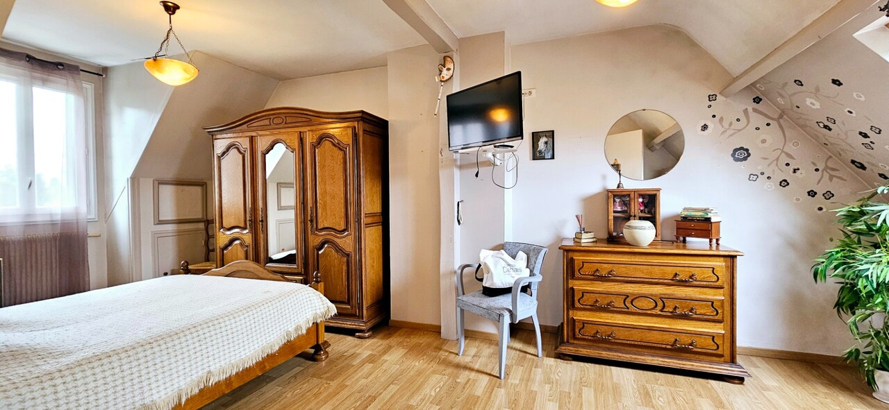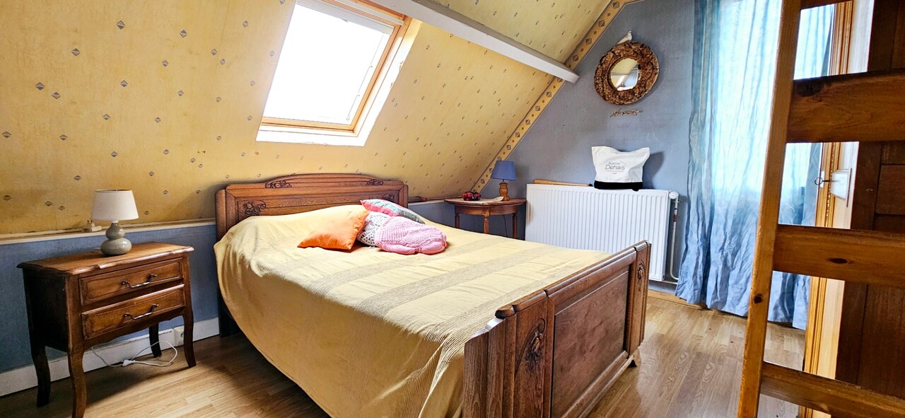 Au premier un palier dessert trois belles chambres dont une avec mezzanine ainsi qu'un cabinet de toilette avec lavabo et WC. Une cave et un cabanon de jardin viennent agrémenter ce bien. Chauffage gaz de ville. Taxe foncière 1242€