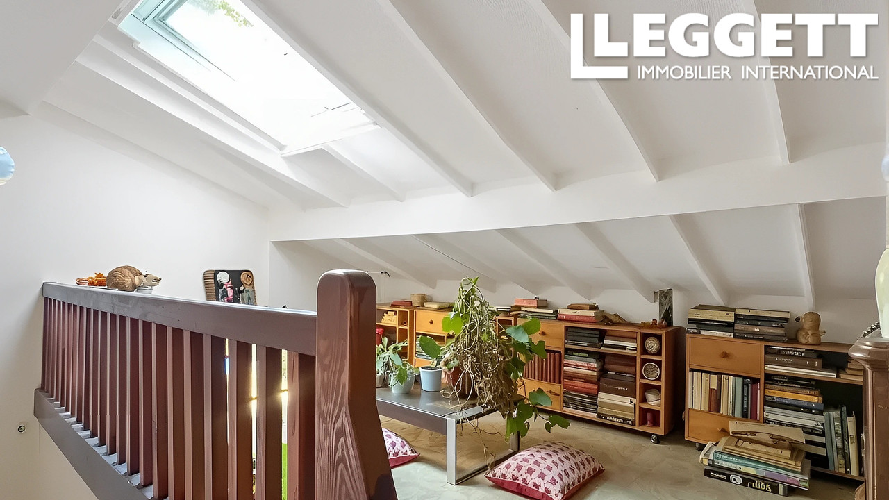 Spacieuse et ouverte de part et d'autre sur le jardin, elle offre un belle pièce de vie avec cheminée pour les flambées d'hiver, un beau volume sous plafond avec poutres apparentes, un espace repas, une cuisine attenante, 5 chambres, ainsi qu'une mezzanine et pièce mansardée, idéales pour un aménagement supplémentaire à l'étage. .