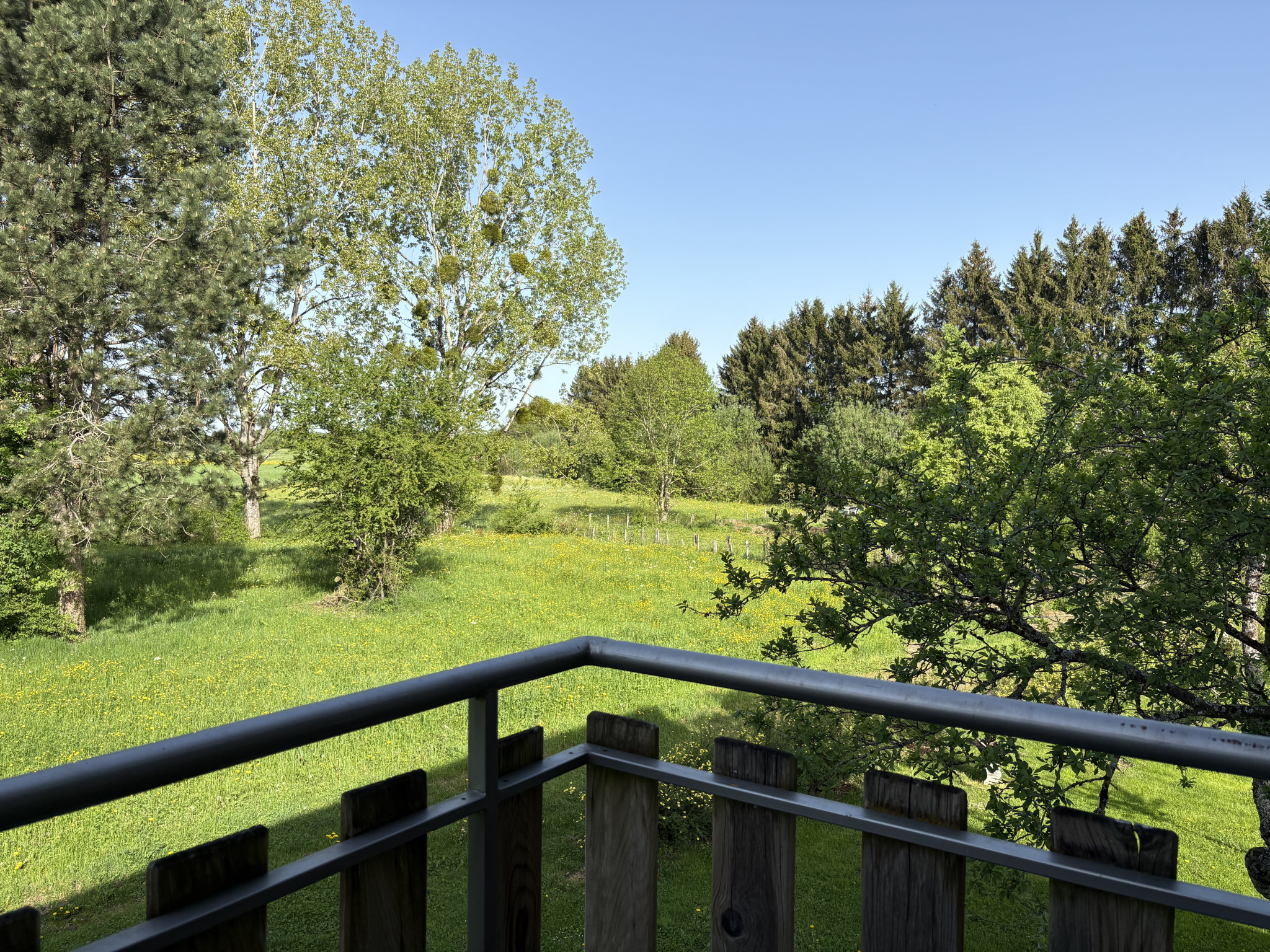 Par ce niveau, on accède aussi à une deuxième terrasse en bois, idéalement située pour profiter du calme du grand terrain arboré.