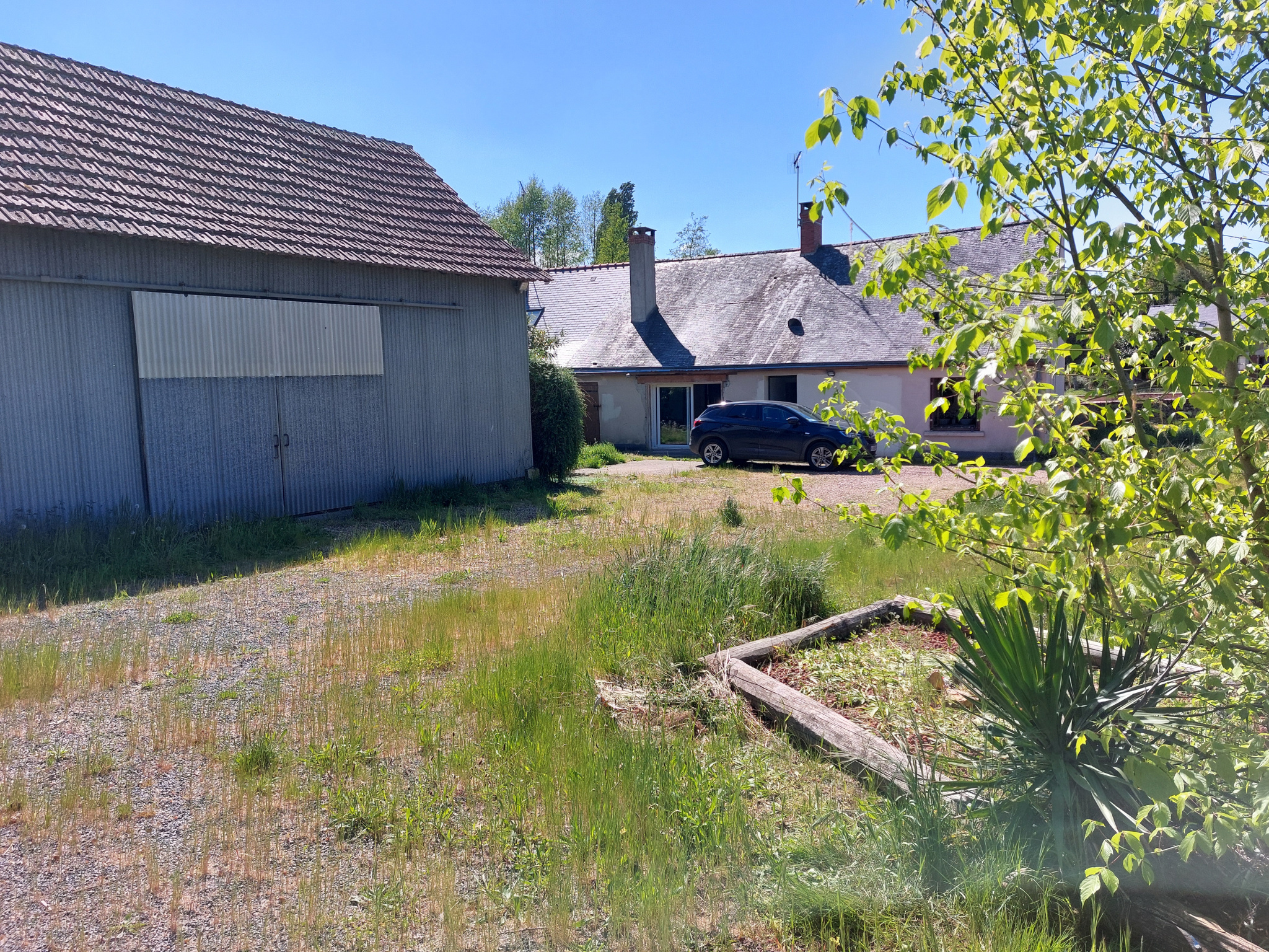 A l'extérieur, un hangar d'environ 150m2 avec partie cave, 1 puits, un local avec chaudière à pellets, une terrasse et 2 portails d'accès.