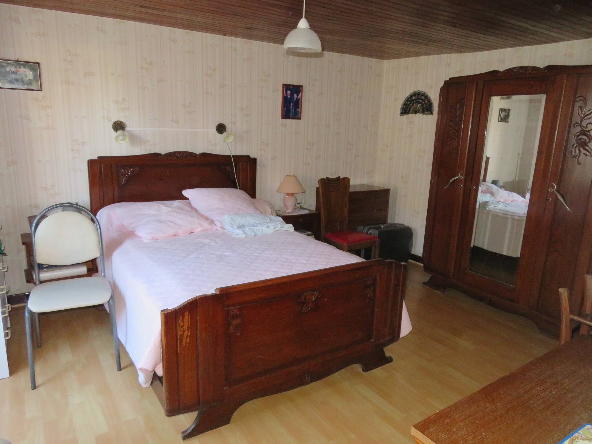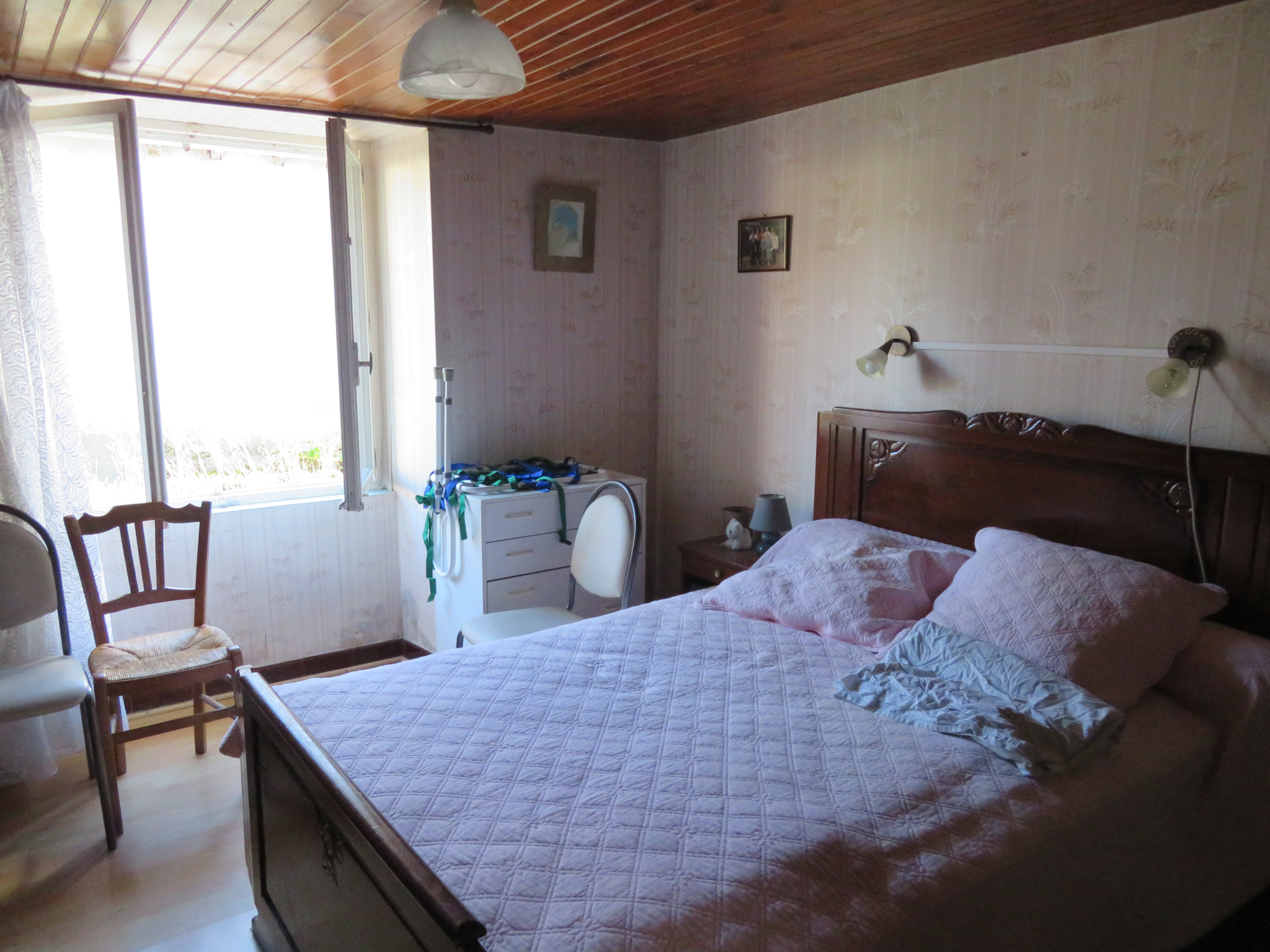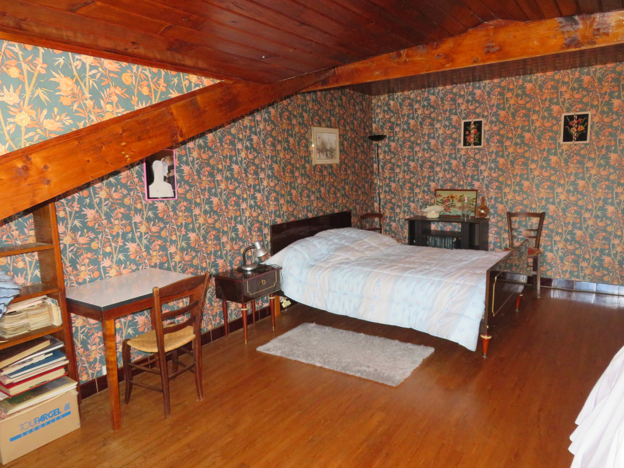 A l'étage, il y a 2 chambres, une salle de bains et un grenier.
