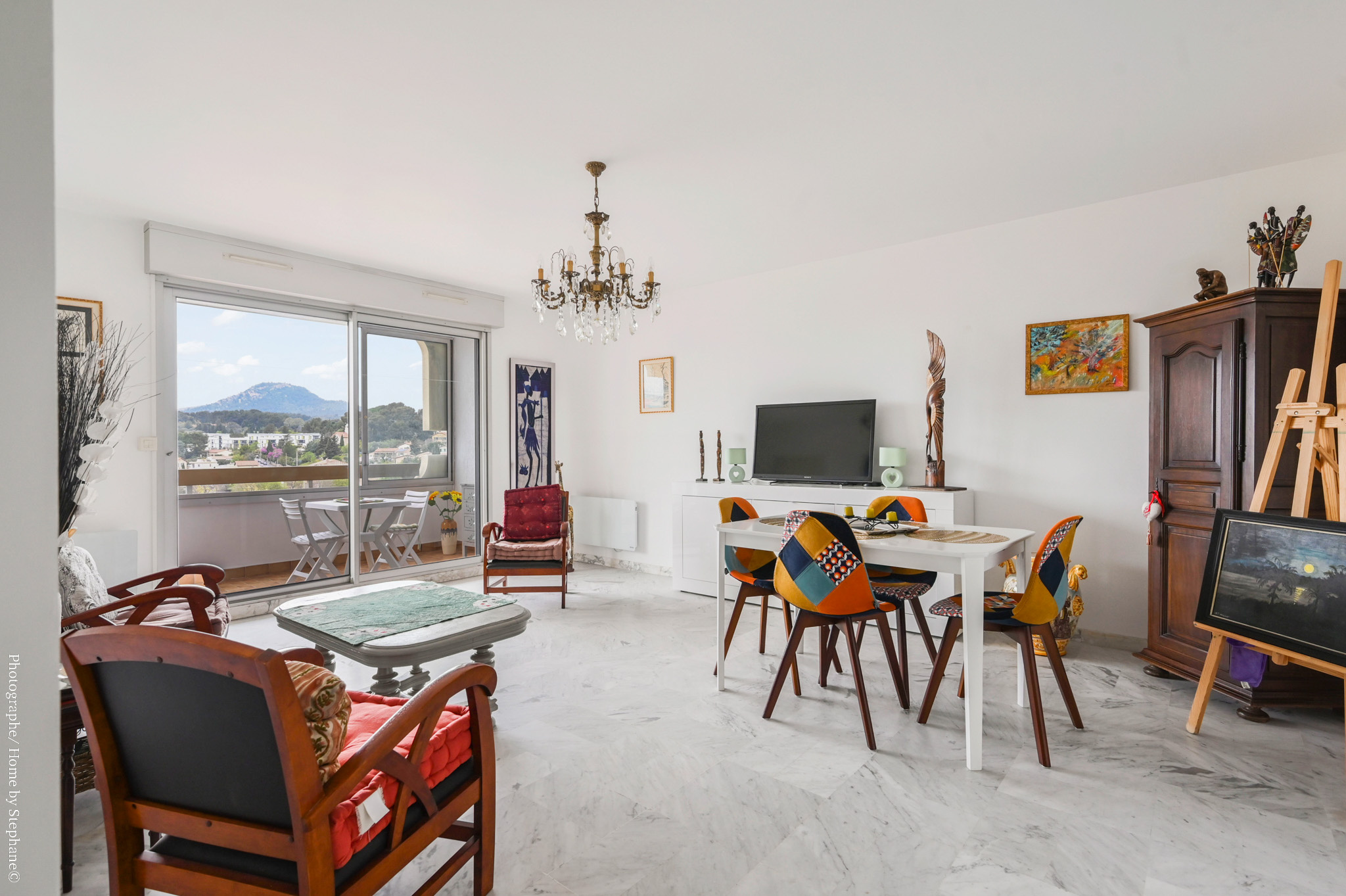 CICERO Isabelle 06.23.24.23.49, vous propose un lumineux appartement traversant, de type 3 d'environ 89 m2 avec une belle vue sur Aubagne et sans vis à vis, aux pieds des commerces et du marché. Cet appartement, aux prestations de qualité, vous offre une confortable surface, ainsi qu'une belle terrasse fermée, un spacieux séjour, une grande cuisine dînatoire et un cellier, une partie nuit composée de 2 chambres, une salle d'eau et un wc. Un box vient compléter ce logement. Contact: LA COMTESSE IMMOBILIER.