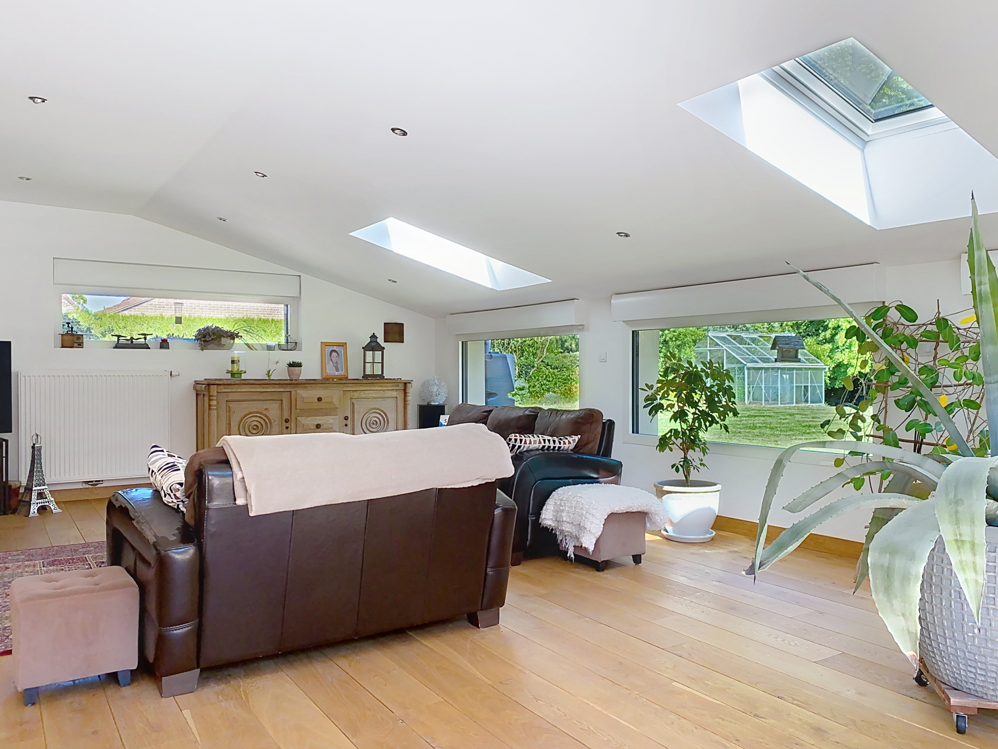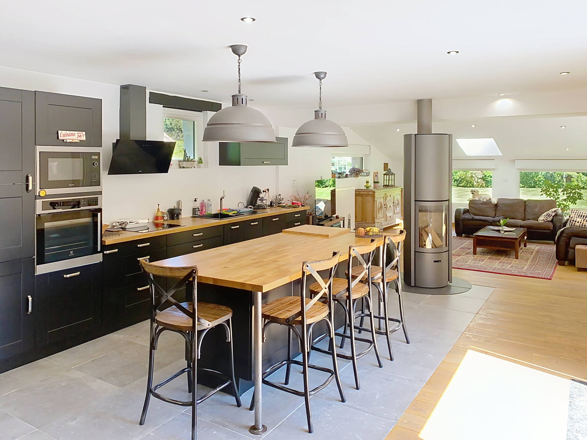 A l'extérieur vous bénéficiez d'une grande terrasse et d'un terrain de 2665 m2 sans vis à vis avec une vue dégagée sur la nature.
