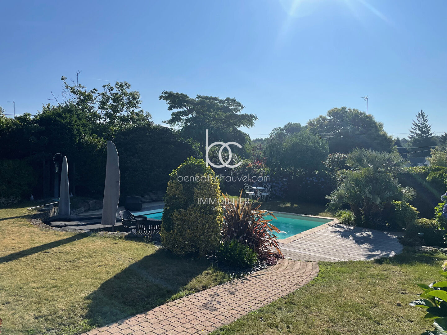 Vous serez immédiatement séduit par le magnifique terrain de plus de 1000 m², entièrement paysagé, qui entoure la maison. Profitez d'une superbe piscine chauffée et sécurisée, sans aucun vis-à-vis.